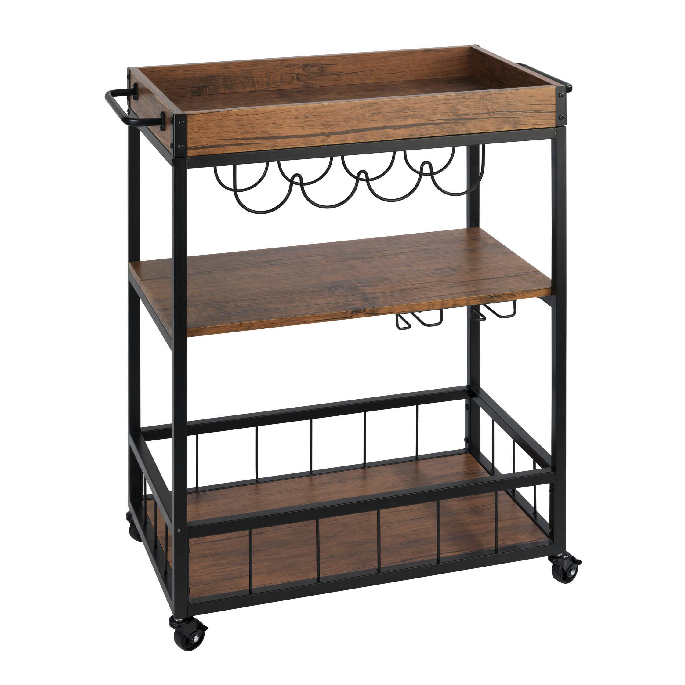 Carrello da cucina Rustico in mdf nero L 80 x H 89.5 x P 40 cm, con ruote