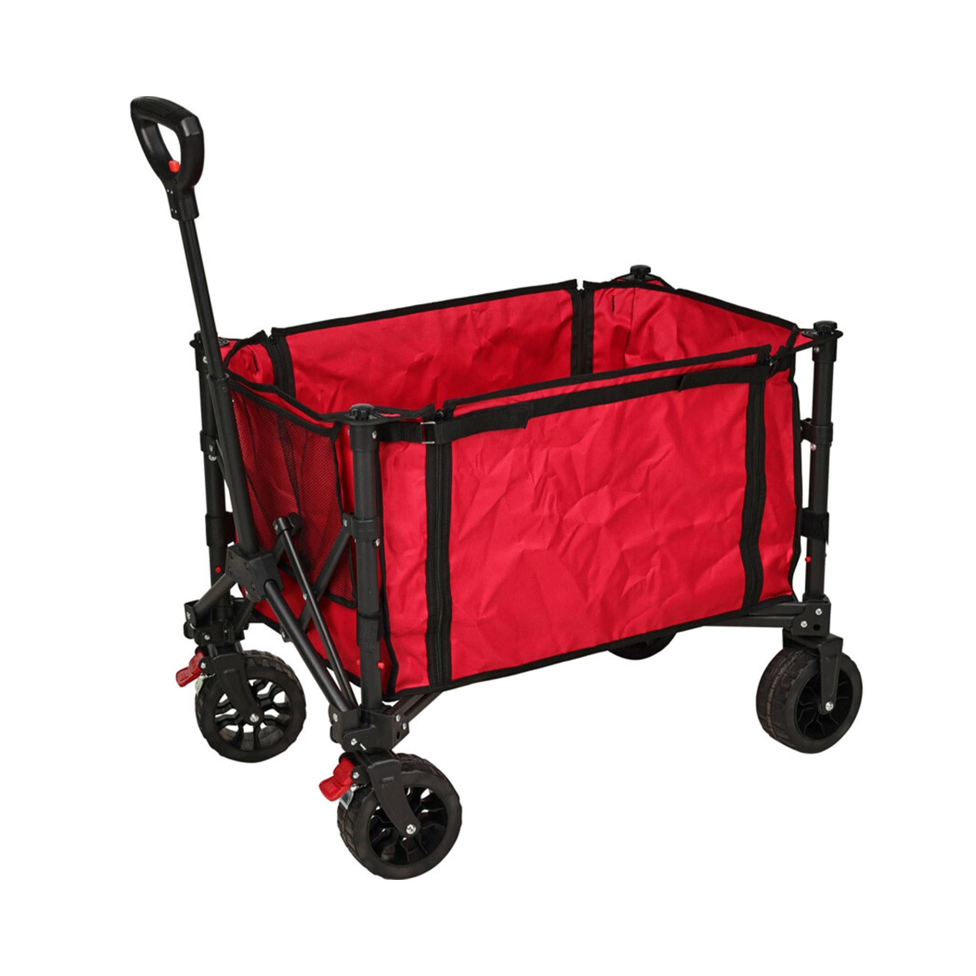 Carrello da spiaggia pieghevole da 120 litri in acciaio al carbonio e poliestere, colore rosso e carico massimo di 80 kg