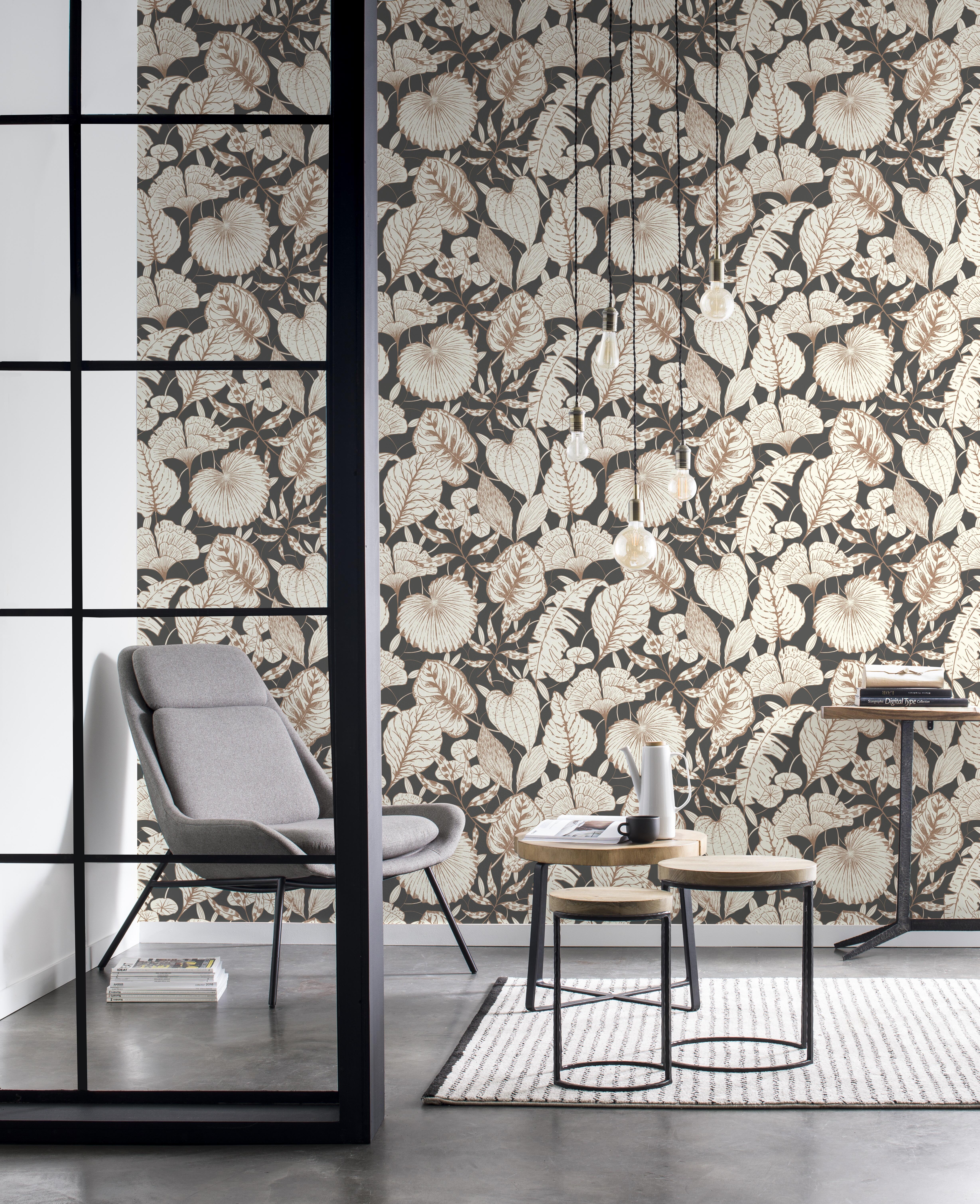 Carta da parati Feuilles Noir nero, 53 cm x 10.05 m