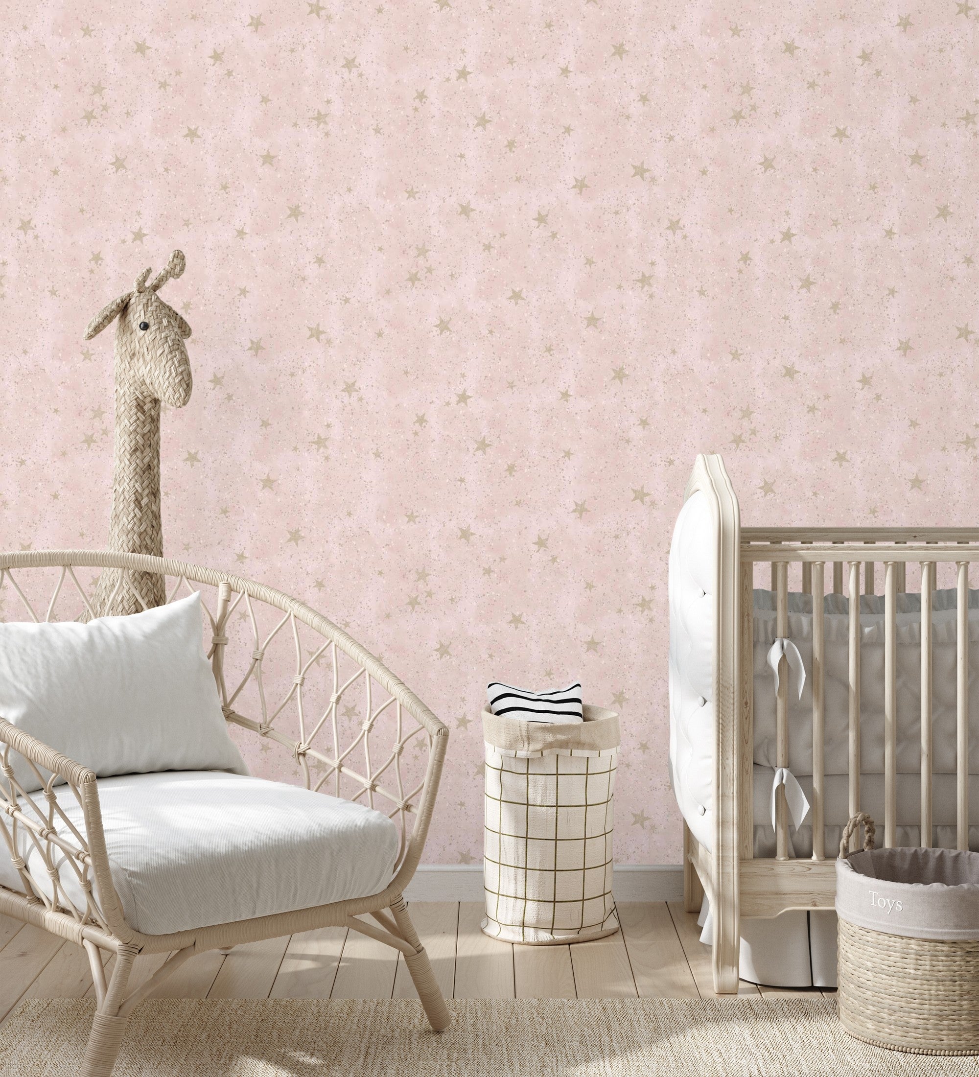 Carta da parati infantile cielo rosa con stelle dorate - Itzel 681984 di GAULAN - Rotolo di 10 m x 0,52 m