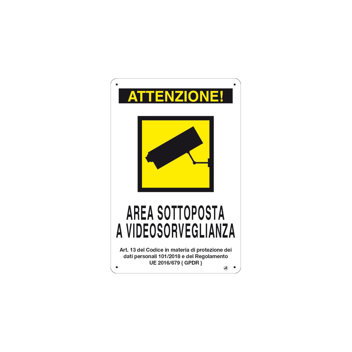 Cartello segnaletico Attenzione area videosorvegliata polipropilene 20 x 30 cm