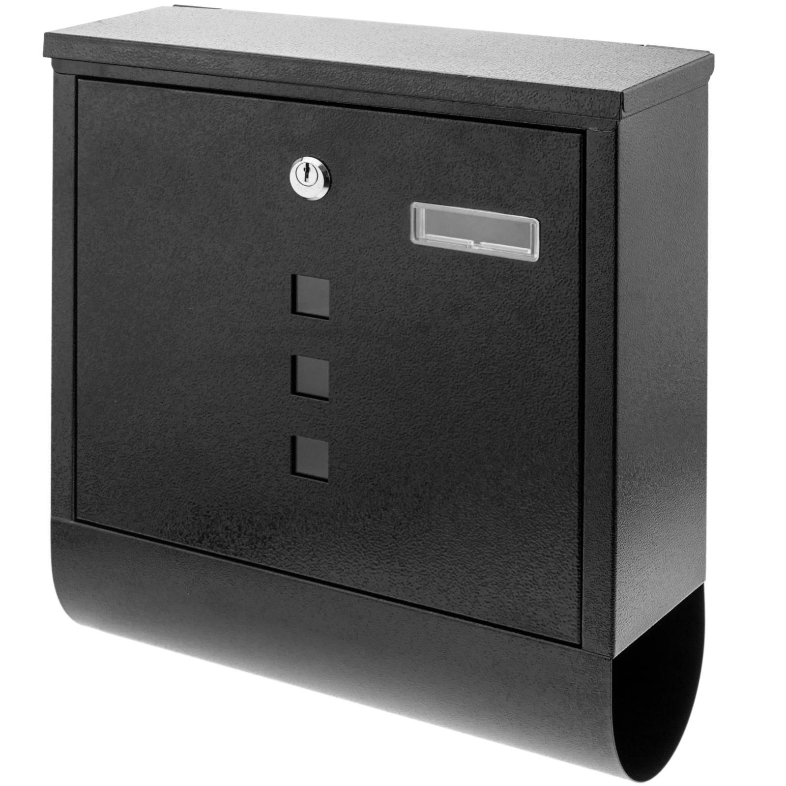 - CARATTERISTICHE: La cassetta delle lettere presenta un design classico ed è realizzata in acciaio di alta qualità verniciato nero. Vengono fornite 2 chiavi per aprire la porta d'ingresso. La porta che dà accesso alla posta ha una dimensione di 26,5 x 23,5 cm. La fessura per la consegna della cassetta delle lettere misura 27 x 4 cm ed è coperta da un coperchio a ribalta. Nella parte inferiore comprende un supporto per ricevere grandi buste, giornali, riviste... con un diametro di 75 mm.