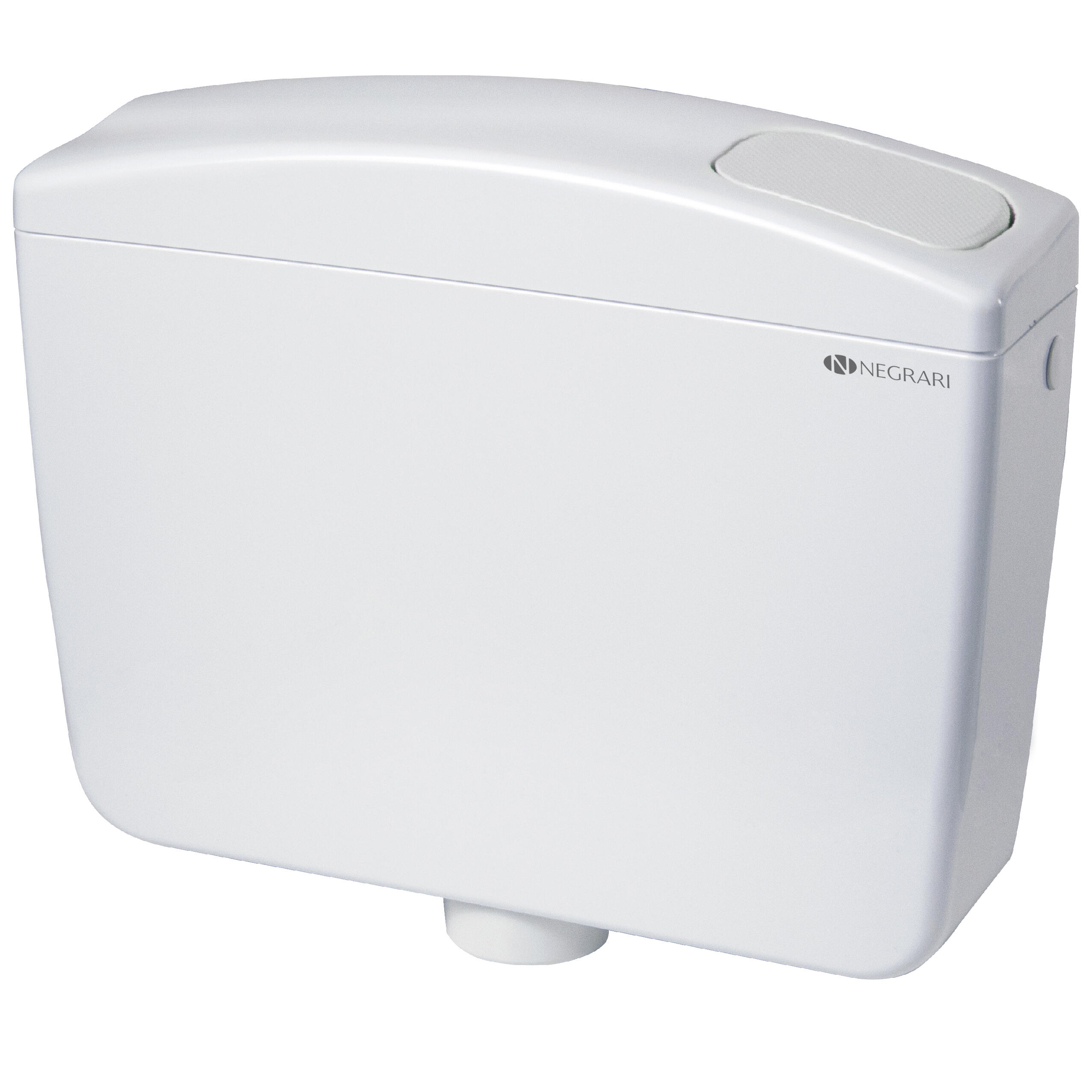 Cassetta WC "Negrari" a zaino a scarico singolo con pulsante start/stop, capacità impostata a 6 litri con possibilità di regolazione fino a 7 litri. Allacciamento idrico destro, sinistro o posteriore centrale, galleggiante con codolo 3/8", completa di isolamento anticondensa, materiale di fissaggio, tubo di cacciata e guarnizione di collegamento al vaso wc