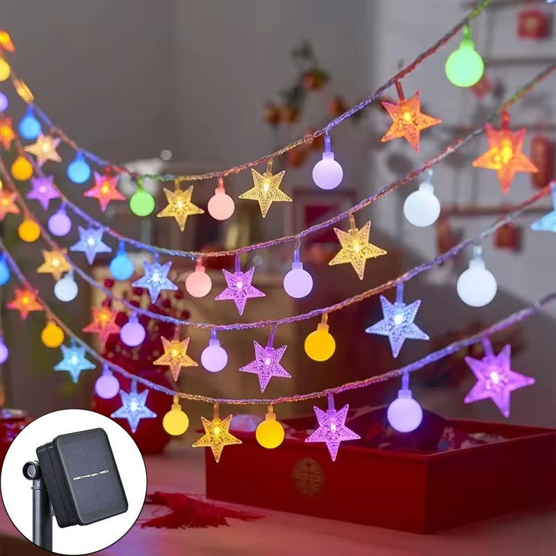【✨Catena luminosa stellata】 Aggiungi un tocco magico e scintillante al tuo spazio con queste catene luminose a forma di stelle e lampadine.