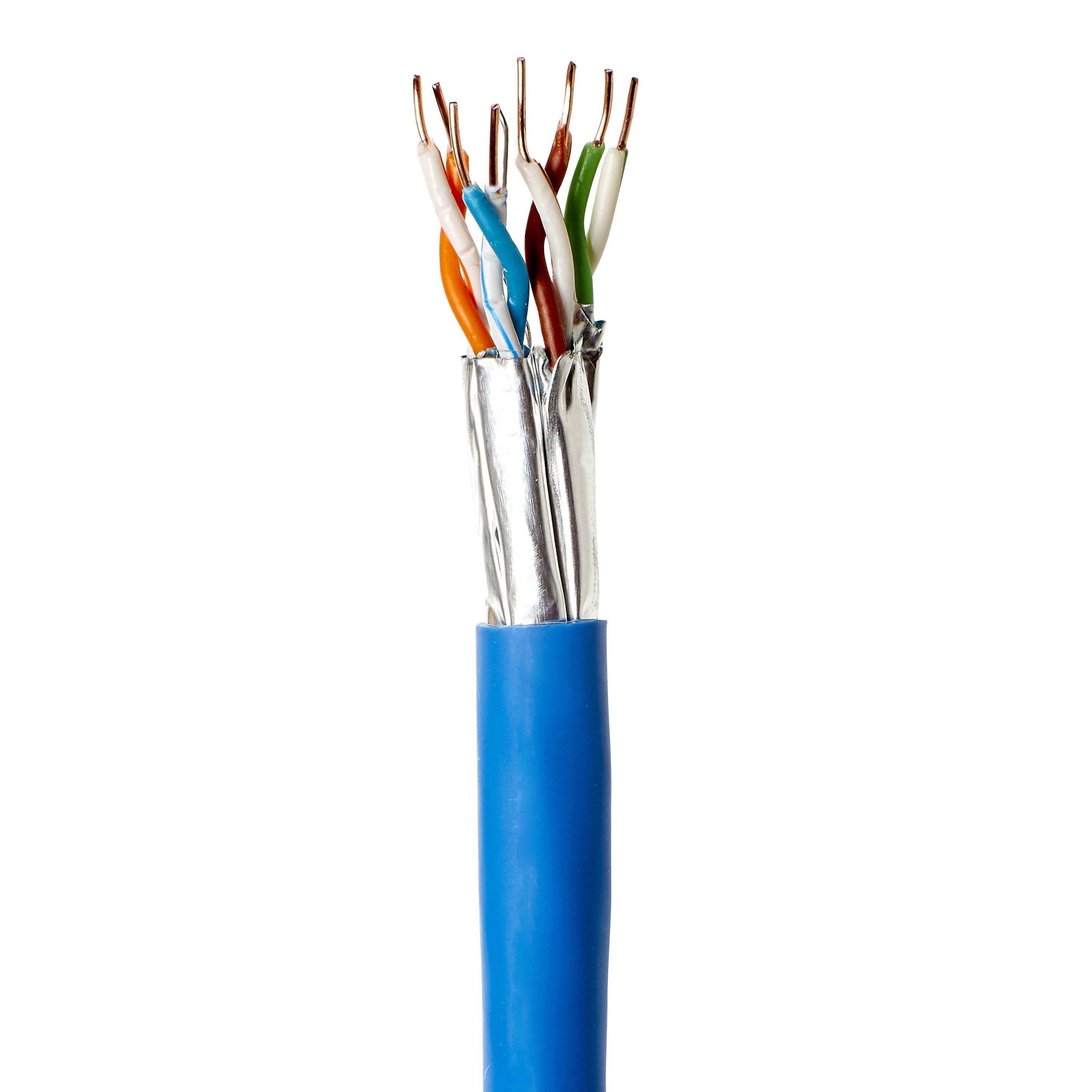 Cavo di rete Ethernet di categoria 6a FTP ignifugo Lexman realizzato in rame di colore blu. Misure: 50 metri di lunghezza.