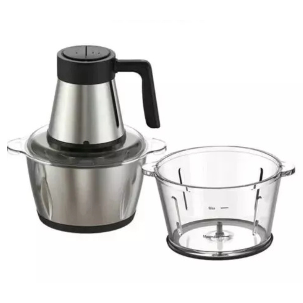 Food Chopper 3.0 Litri – La soluzione perfetta per tritare, sminuzzare e macinare rapidamente i tuoi ingredienti in cucina. Con una capacità di 3.0 litri e una potenza elevata, questo tritatutto elettrico ti permette di preparare piatti gustosi e sani in pochi secondi, risparmiando tempo ed energia. Caratteristiche principali: Capacità 3.0 Litri: Ampio contenitore che ti permette di tritare grandi quantità di cibo in una sola volta, perfetto per preparare pasti per tutta la famiglia o per chi ama cucinare in grandi porzioni. Potenza elevata: Motore potente che garantisce prestazioni eccellenti per tritare, macinare e sminuzzare con facilità, anche alimenti più duri come carne, noci, verdure e frutta. Design pratico e sicuro: Dotato di una base stabile e antiscivolo, il tritatutto è sicuro da usare e facile da maneggiare. La copertura trasparente permette di monitorare facilmente il processo di tritatura. Lame affilate in acciaio inox: Le lame sono realizzate in acciaio inox di alta qualità, garantendo un taglio preciso e duraturo per un'ottima lavorazione degli ingredienti. Facile da pulire: Le parti removibili, come il contenitore e le lame, sono facili da pulire, permettendoti di mantenere l'apparecchio sempre in perfette condizioni. Versatile: Perfetto per tritare carne, pesce, verdure, frutta, noci, spezie e molto altro. Ideale per preparare salse, purè, zuppe, impasti, hamburger e piatti creativi.