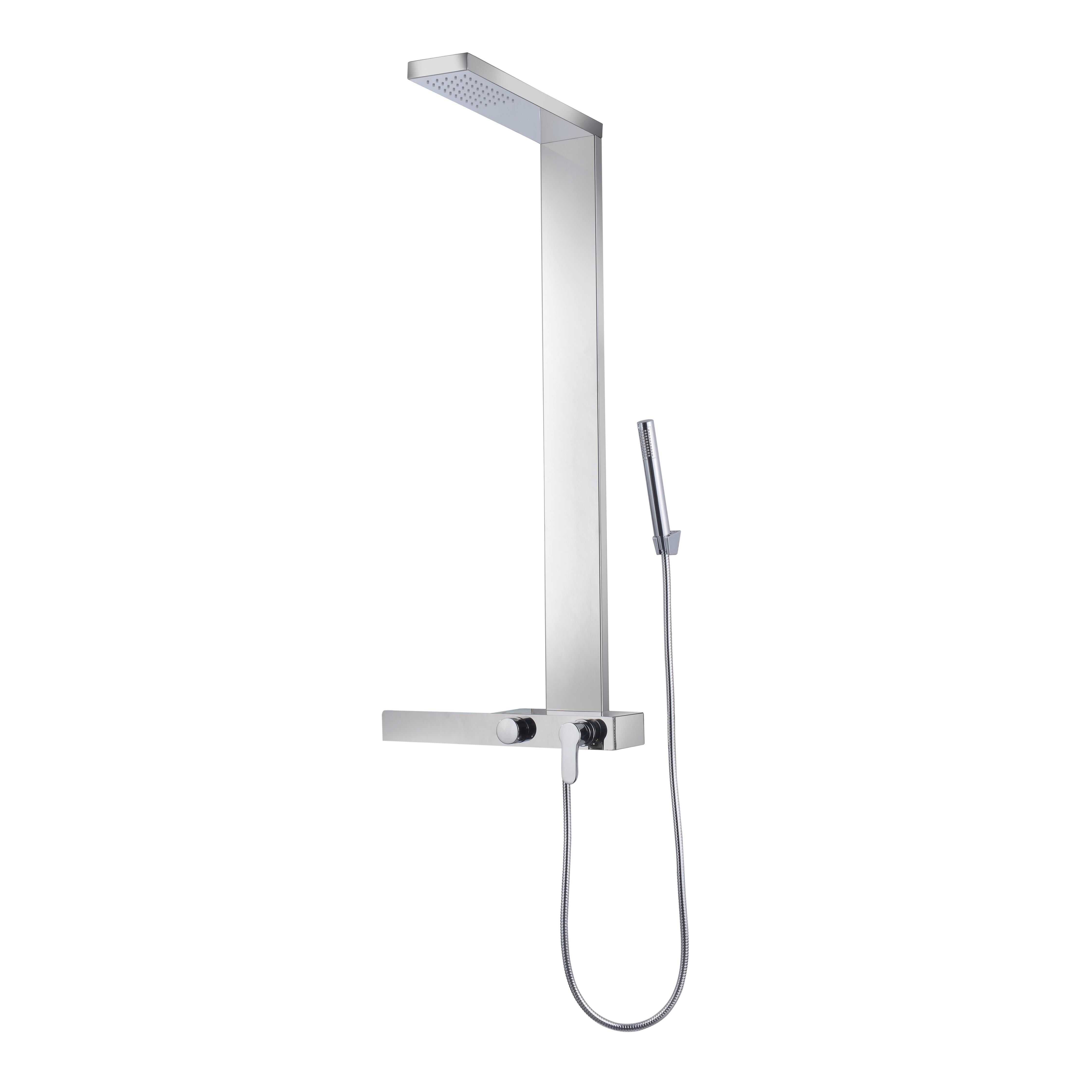Soffione rettangolare 18x22 cm - 1 getto e doccetta in ABS. Asta in ottone cromato con miscelatore, deviatore integrato.