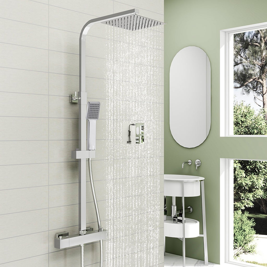 Colonne doccia termostatiche, OCEAN ITALY, Miscelatore doccia con soffione quadrato 20cm, acciaio inox cromato