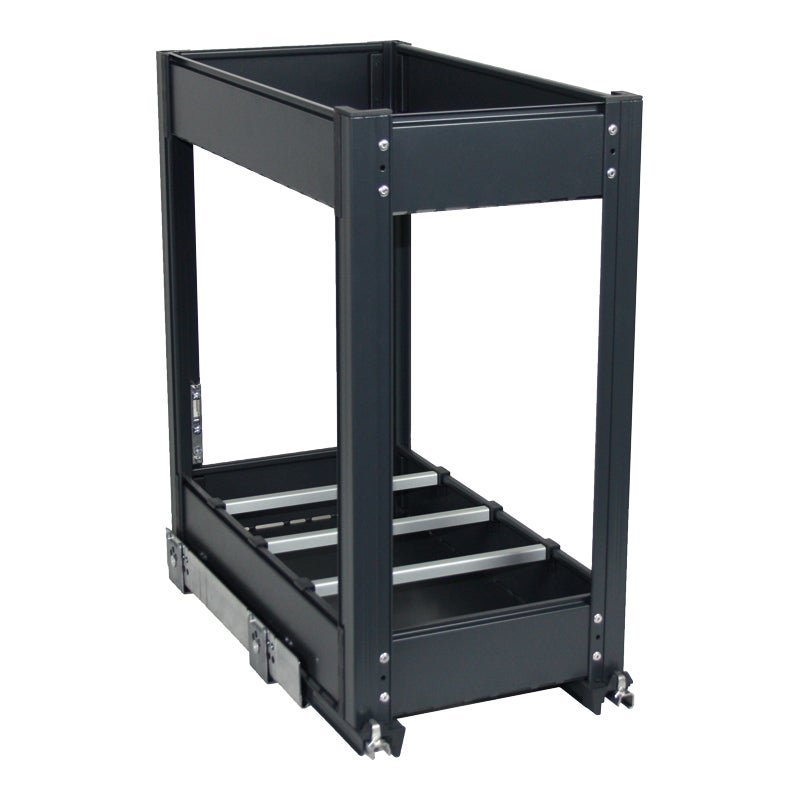 Montant aluminium décor artgent. Paniers acier recouvert époxy gris. Coulisses sortie totale sur amortisseur. Attaches façade à réglage 3 directions. Hauteur : 518 mm Profondeur : 480 mm Charge : 30 kg Décor : Argent / GrisLargeur (mm) : 359 Sortie : TotaleFixation : Au solNombre de niveaux : 2 Pour caisson de largeur (mm) : 400