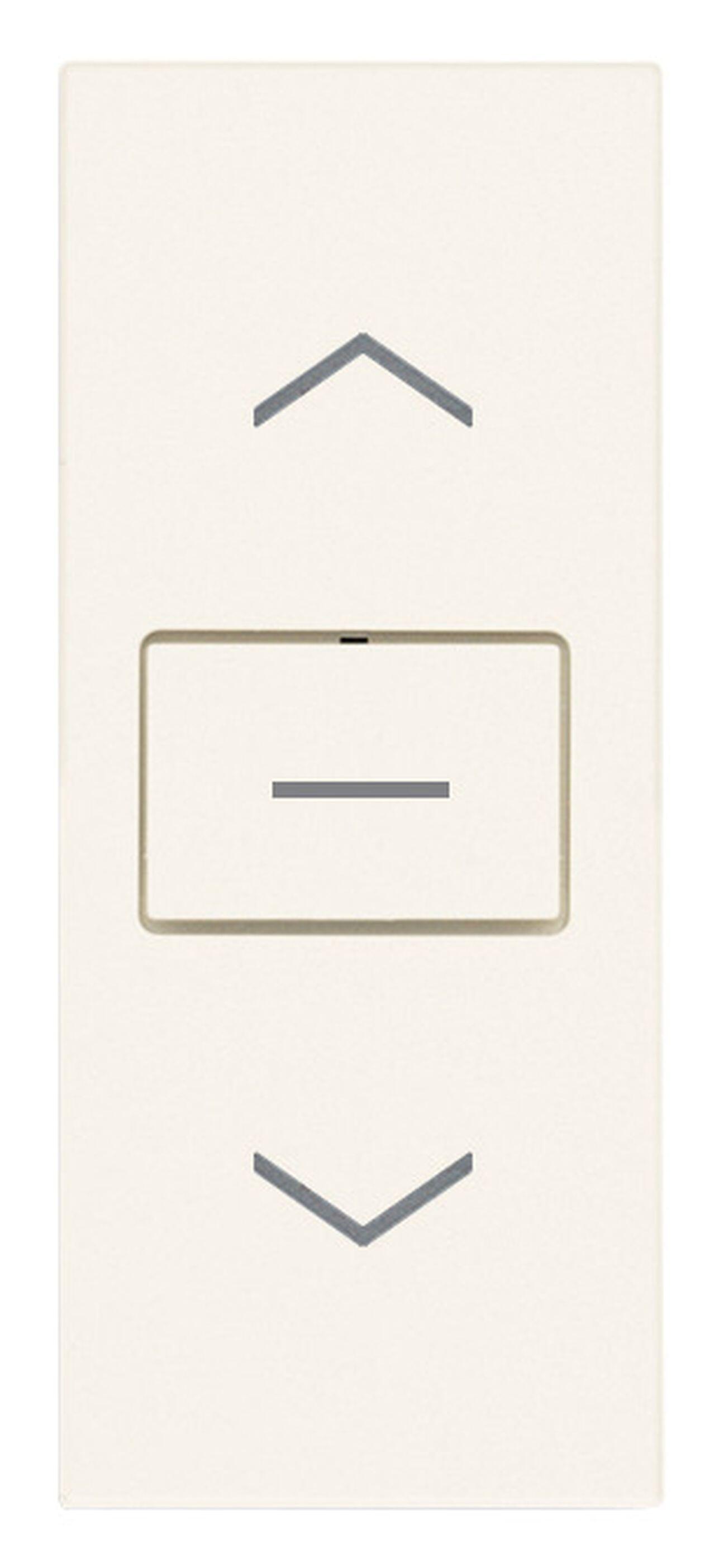 Commutatore 1P 10 AX 250 V, a due tasti, con frecce direzionali e posizione OFF centrale, bianco. Max 100 W per lampade con alimentatore integrato (IEC 60669-1:2017)
