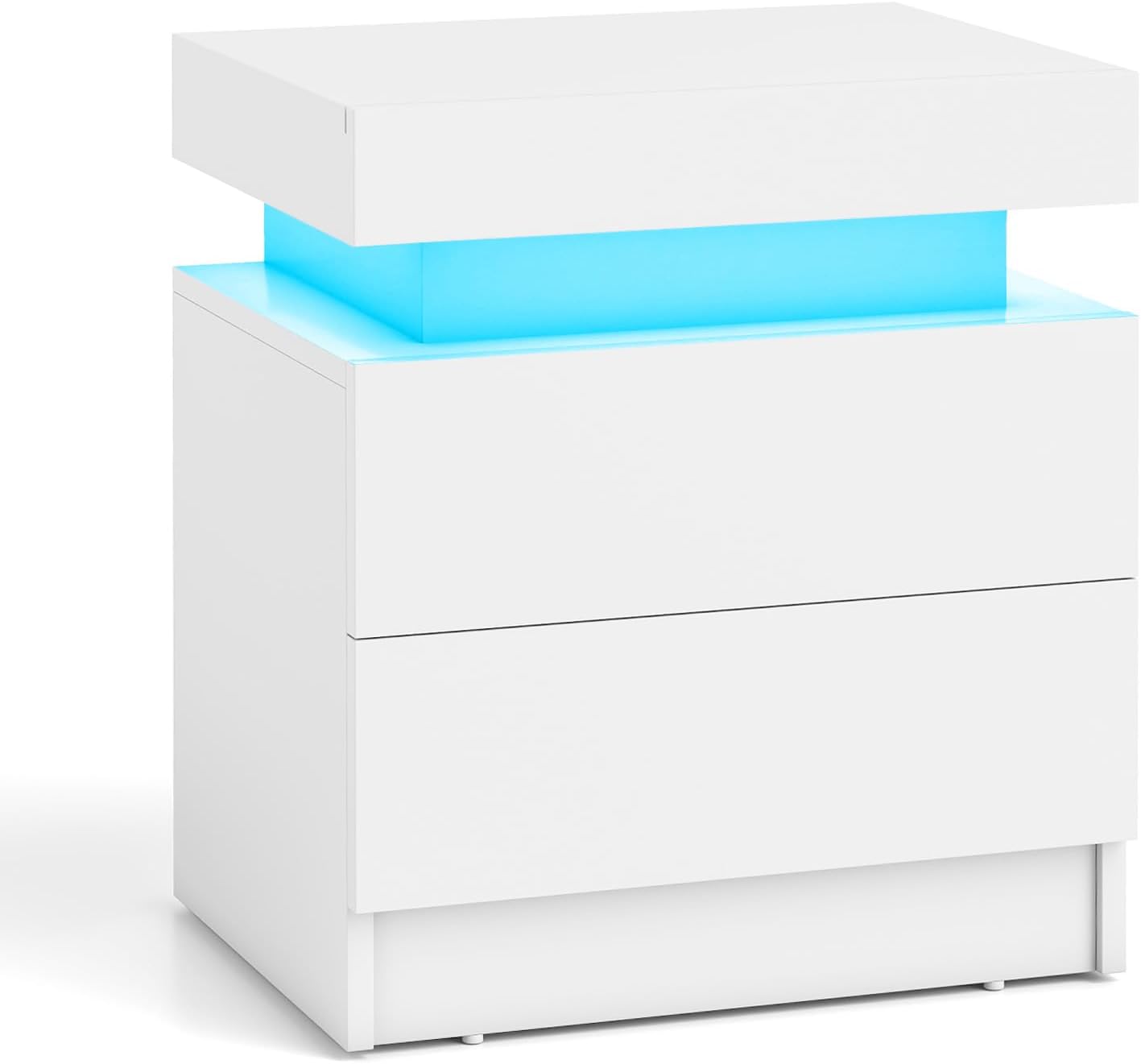 Crea un'atmosfera accogliente e moderna nella tua camera da letto con il nostro comodino con illuminazione a LED integrata, che offre 22 modalità dinamiche e 20 colori statici. Dotato di un ampio ripiano e di due grandi cassetti, mantiene tutti i tuoi oggetti essenziali organizzati e a portata di mano. Un elemento indispensabile per abbellire il tuo spazio interno con stile e praticità. Grazie alla sua superficie liscia e resistente all'acqua, è facile da pulire e mantenere quotidianamente. Mantieni la tua casa in ordine con questo comodino minimalista!