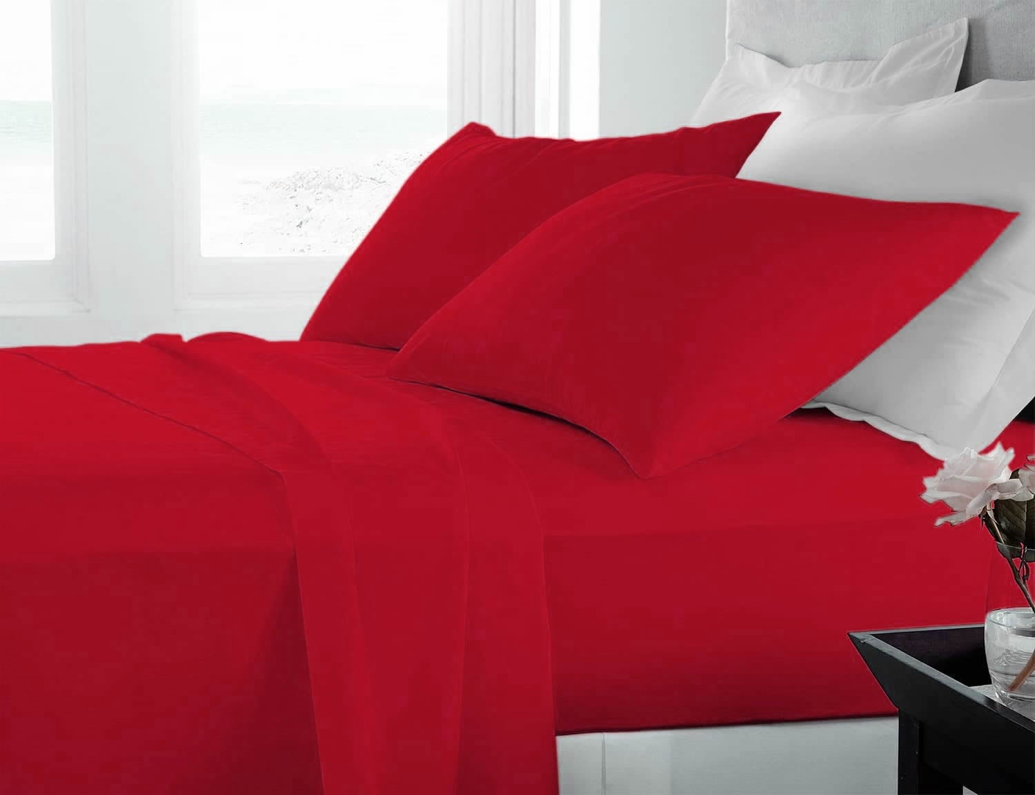 Completo Letto Matrimoniale 100% Cotone Rosso - Set 3 pezzi