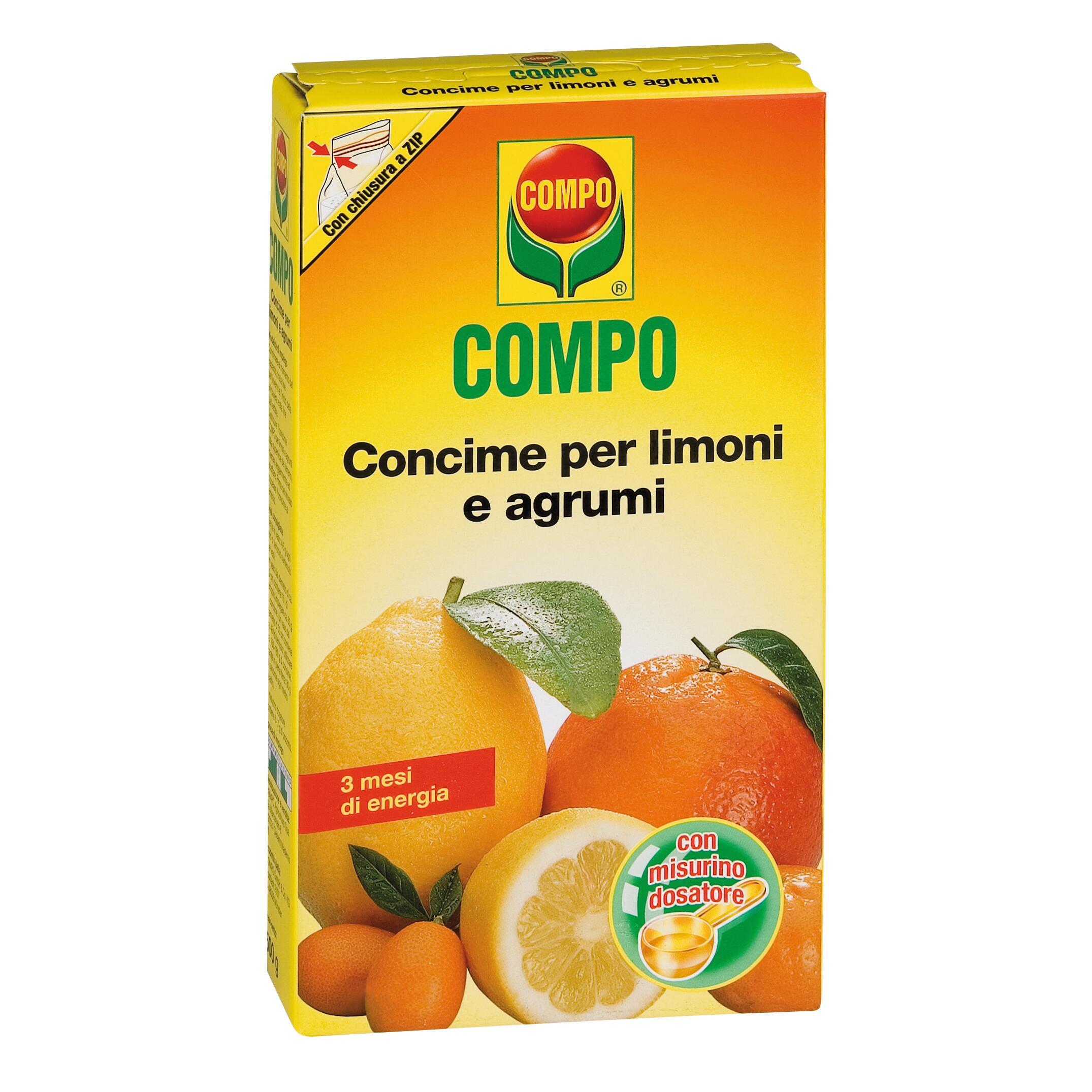 Concime NK (Mg–S) 17-10 (3–30) contenente isobutilindendiurea e urea formaldeide ottenuto per miscelazione. Ideale per la nutrizione degli agrumi sia in vaso che piena terra, quali: limone, arancio, mandarino, kumquat ma anche piante mediterranee quali l’olivo. La presenza di Azoto a lenta cessione, garantisce 3 mesi di giusto nutrimento di tutti gli agrumi riducendo la frequenza del trattamento. L' alto contenuto di Azoto, Potassio e Magnesio favorisce lo sviluppo equilibrato delle foglie, dei germogli e la formazione dei frutti. I microelementi e il Magnesio combattono ingiallimenti e disseccamenti fogliari e favoriscono la formazione e la piena maturazione dei frutti. Modalità d'uso: Distribuire il concime intorno alla base della pianta, lavorare il terreno superficialmente per incorporare il prodotto ed infine annaffiare.