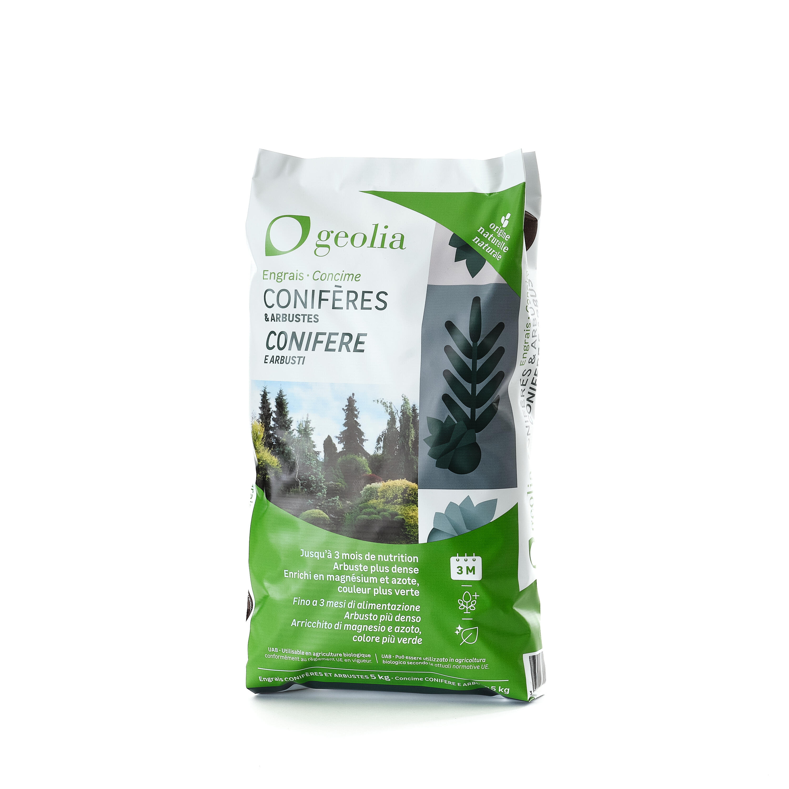 Concime granulato GEOLIA per alberi e arbusti Conifere BIO Conifere e arbusti 5 kg