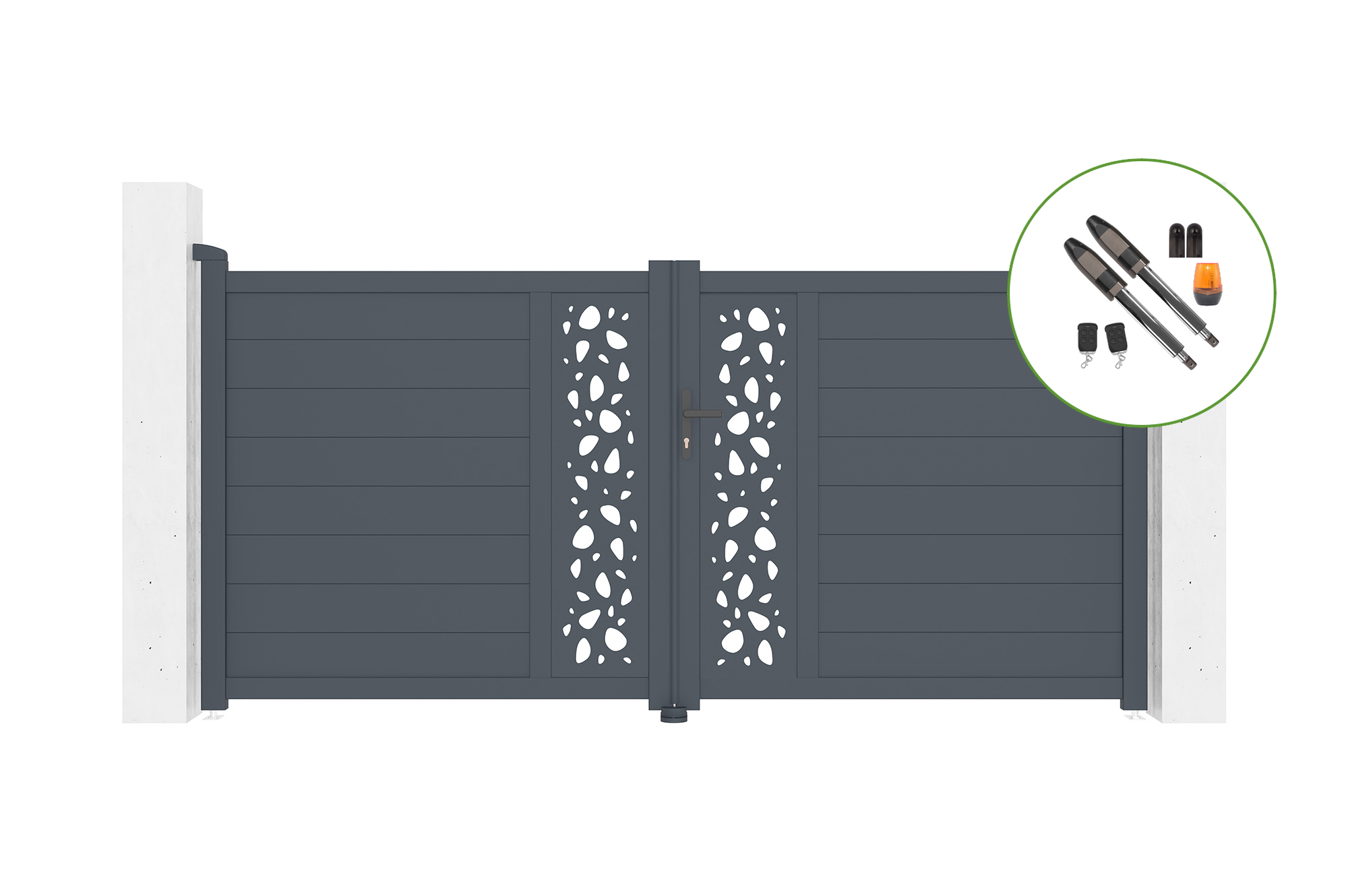 Il suo design sobrio ti permette di beneficiare di un cancello elettrico di facile utilizzo con una potenza notevole, senza stravolgere l'estetica del tuo cancello e danneggiare il tuo esterno.