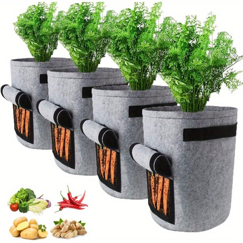 Confezione da 4 - 56L D40cm*H45cm vaso per fiori ad alte prestazioni, sacco per piantare patate, con finestra di ricezione, grigio