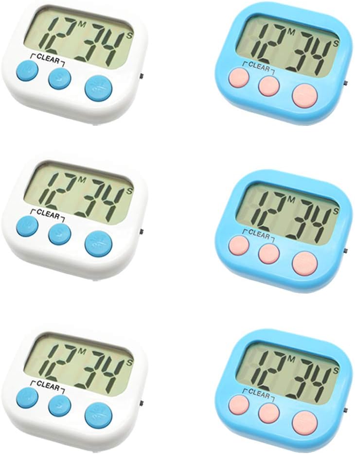 Confezione da 6 timer digitali per insegnanti, piccoli timer per bambini, retro magnetico, grande display LCD, allarme forte, minuti, secondi, conto