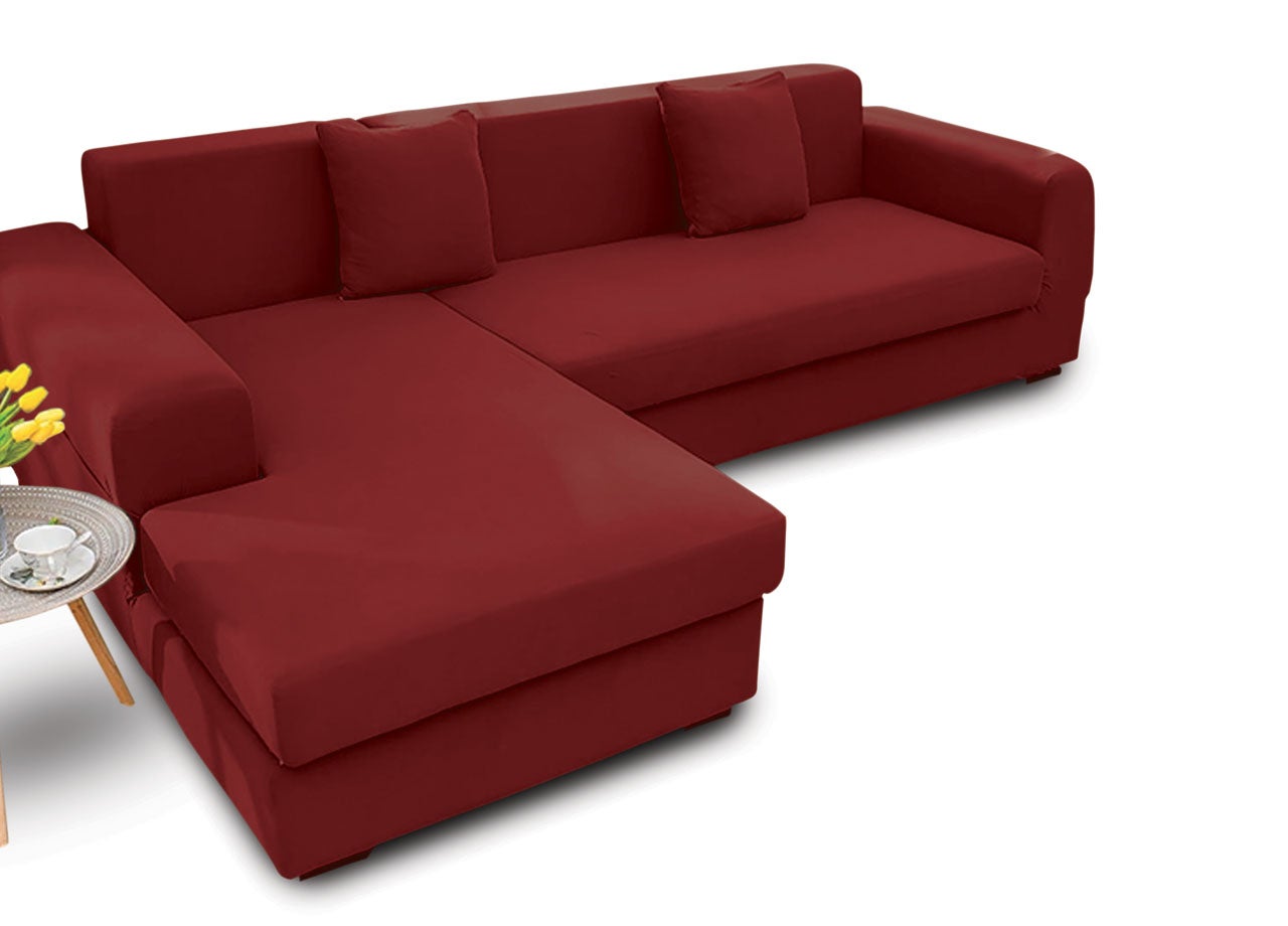 Copridivano Antimacchia Elasticizzato Penisola Componibile Tinta Unita Modello Perfetto Poltrona Bordeaux