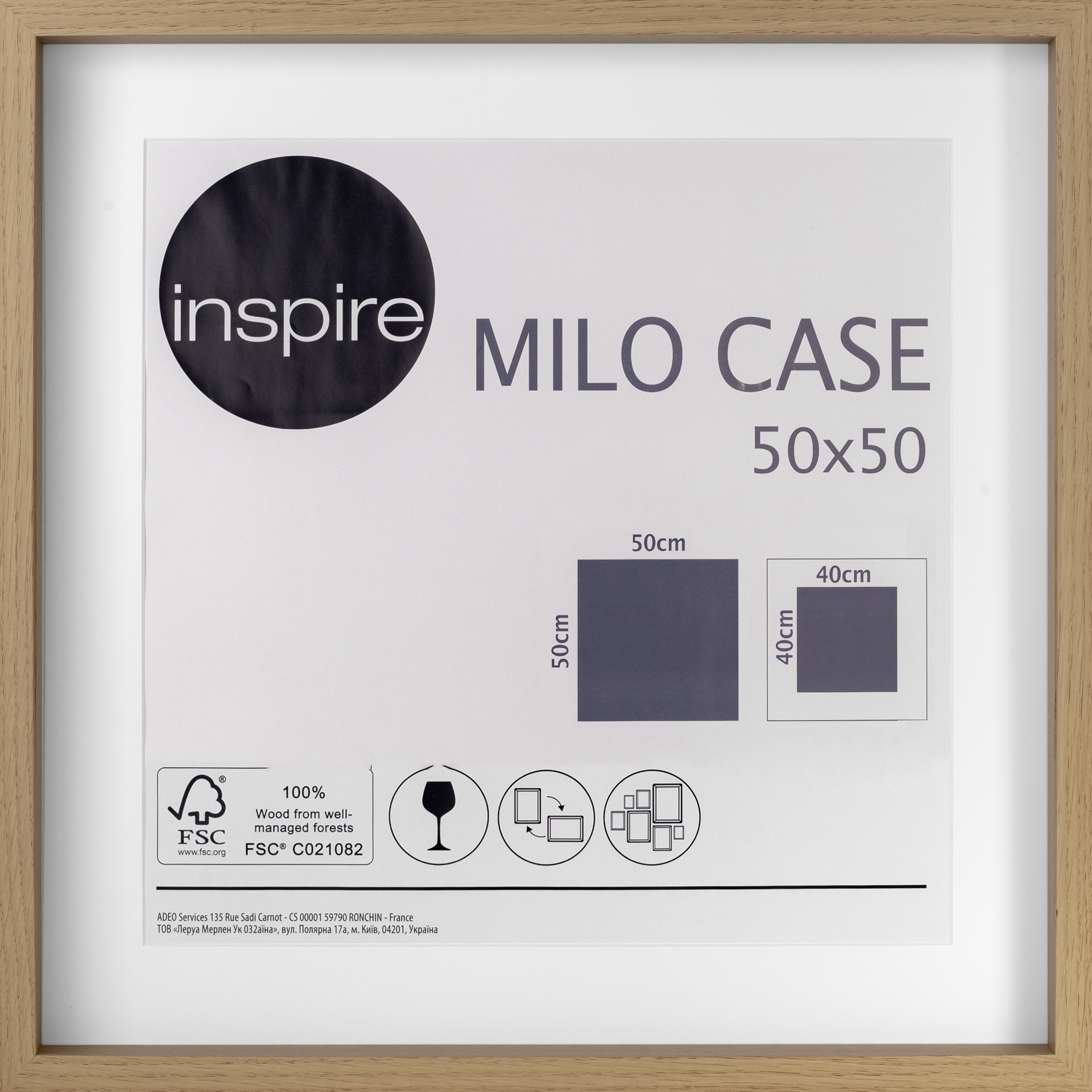 Cornice 50x50 cm in mdf rovere da parete con passe-partout per immagini 40x40 cm INSPIRE Milo