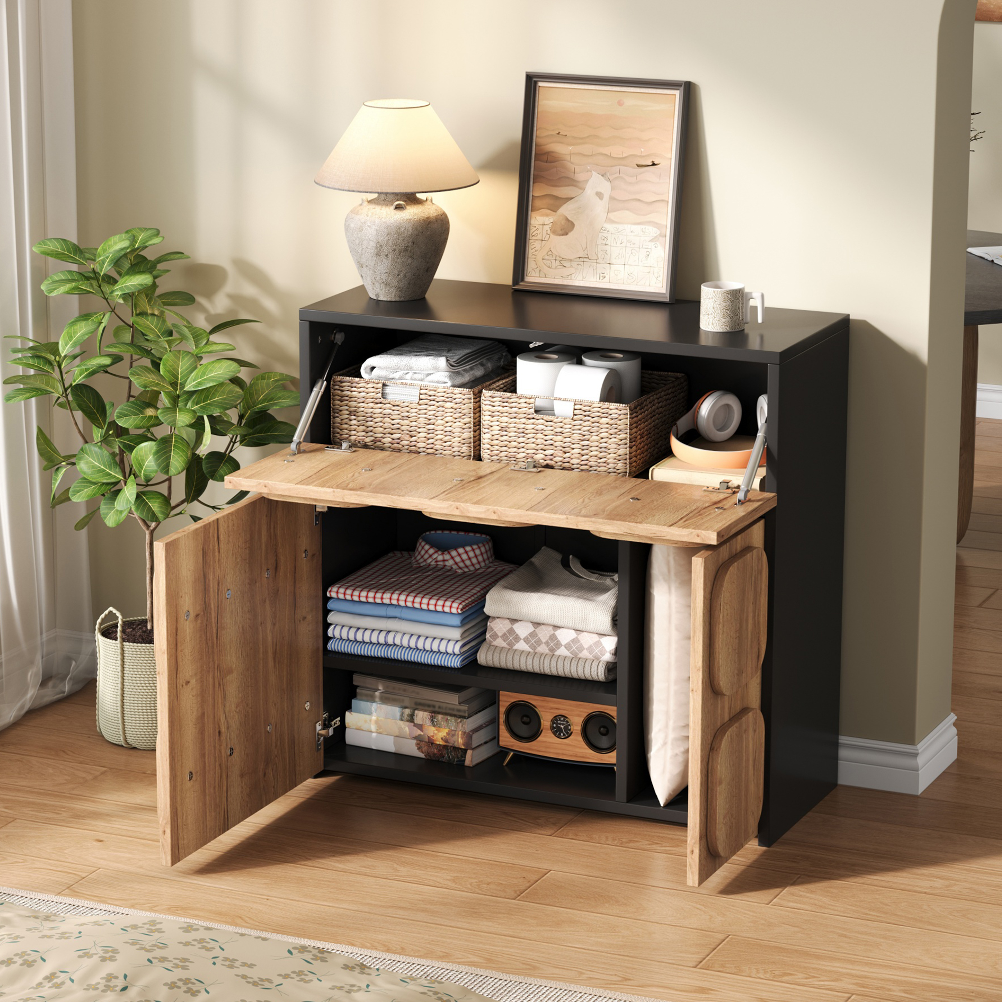 Offre cinque ampi scomparti per riporre oggetti in modo versatile in soggiorno, sala da pranzo o corridoio.