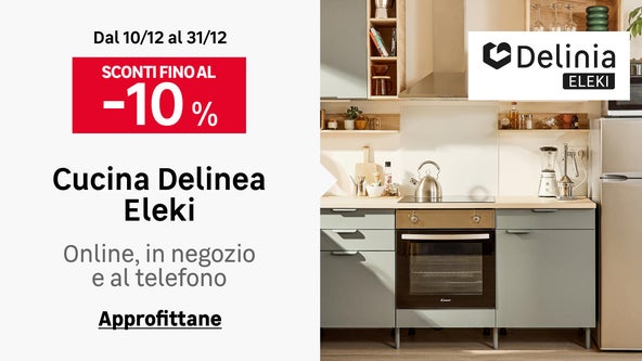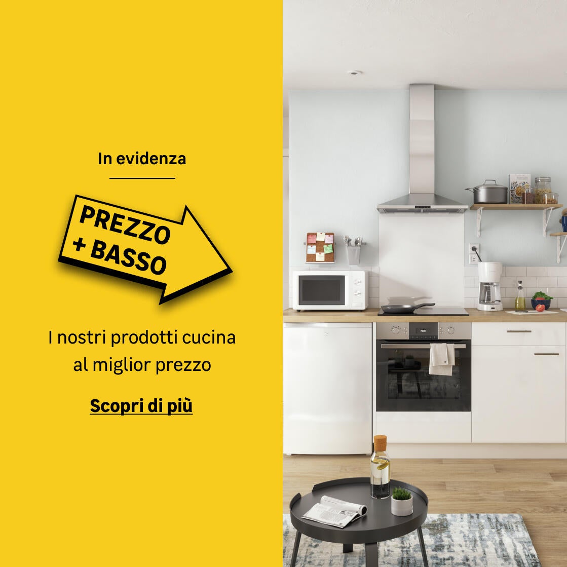 La cucina è il cuore della casa: è un luogo dove accogliere gli amici e conversare a fine giornata. Nei nostri negozi e sul sito trovi ciò serve per progettare la cucina: cucine a moduli fissi o componibili, elettrodomestici come cappe aspiranti, piani cottura, frigoriferi, lavastoviglie e forni. Ma non solo: rivestimenti per pareti e illuminazione per cucina come faretti o strisce LED, senza dimenticare gli utensili da cucina come scolapiatti, accessori da parete e carrelli.