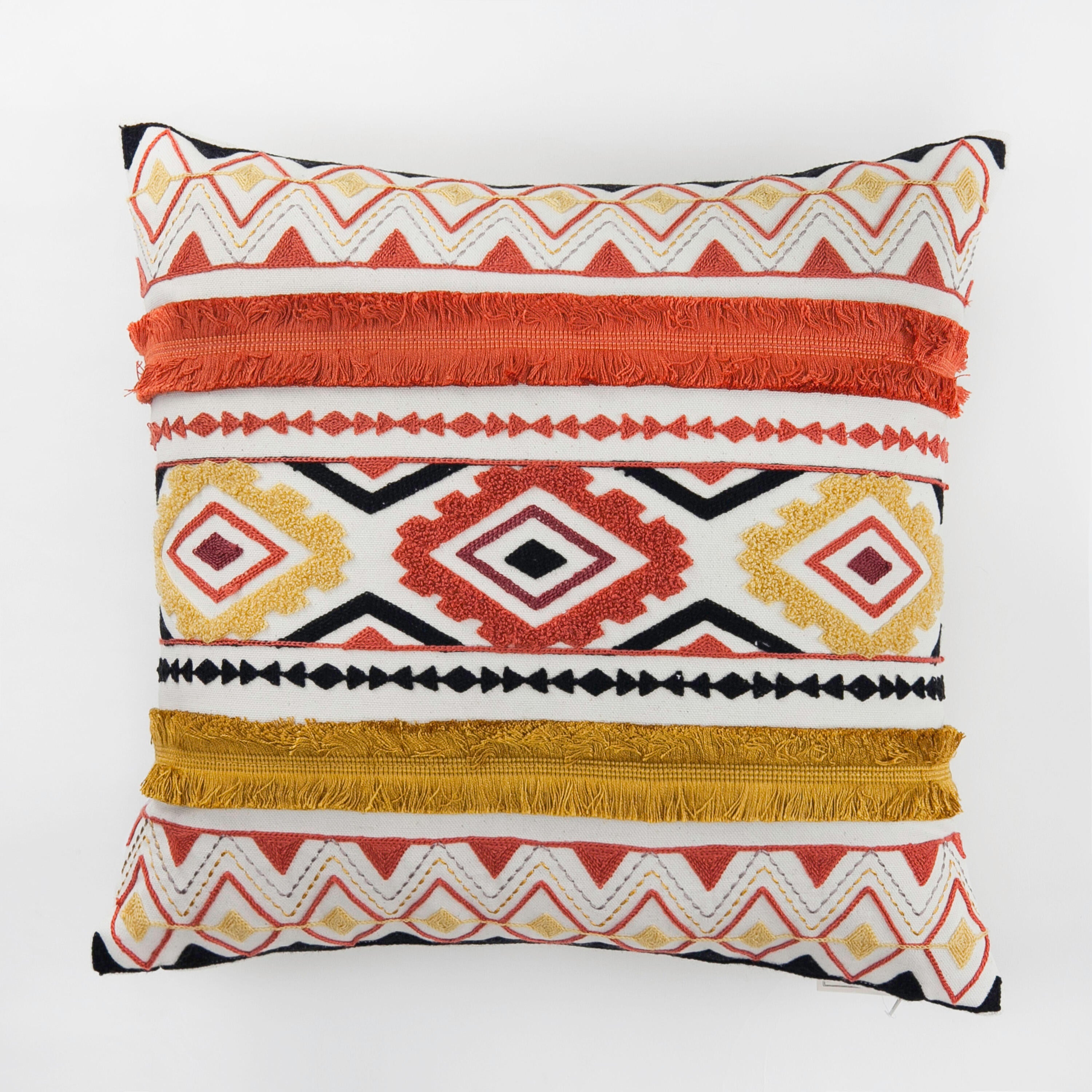 Cuscino decorativo di più colori realizzato in cotone con disegno ricamato e finitura overlock. La sua stampa geometrica e lo stile bohémien rendono questo cuscino perfetto per decorare e creare un'atmosfera più accogliente nelle stanze della tua casa. La sua imbottitura in 100% poliestere, oltre a fungere da elemento decorativo, garantisce comfort e praticità nei momenti di riposo. È sfoderabile grazie alla sua chiusura con zip e può essere facilmente lavato in lavatrice. Misure: 45 x 45 cm (larghezza x altezza).