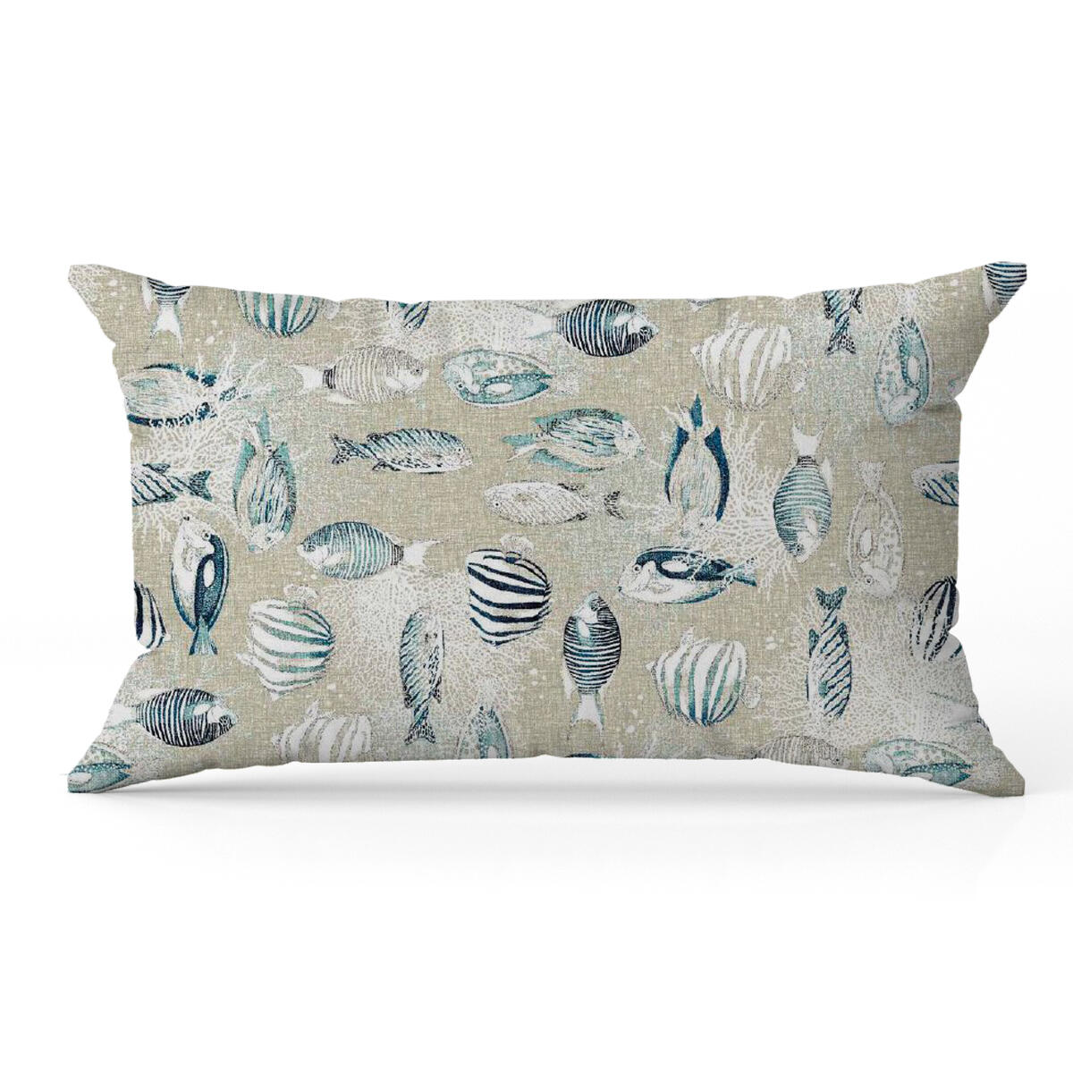 Cuscino con disegno marino su base azzurra. Misure 30x50 cm.