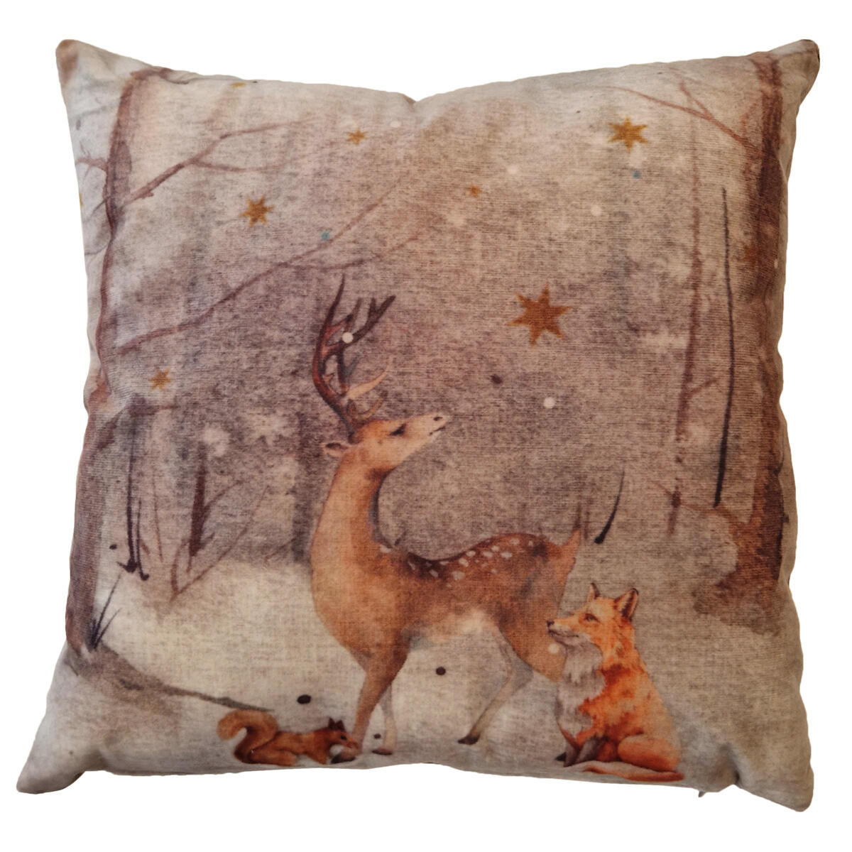 Cuscino in velluto con disegno renna retro tinta unita beige, 42x42 cm
