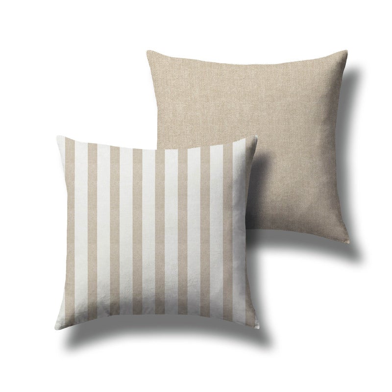 Cuscino salotto 45x45 DOUBLE FACE shabby righe grandi beige ebianco