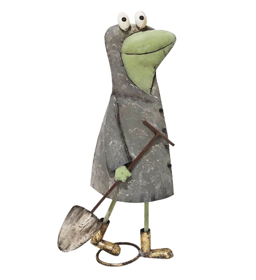 Decorazione RANA C/IMPERMEABILE H45 VERDE/ORO/METALL in ceramica H