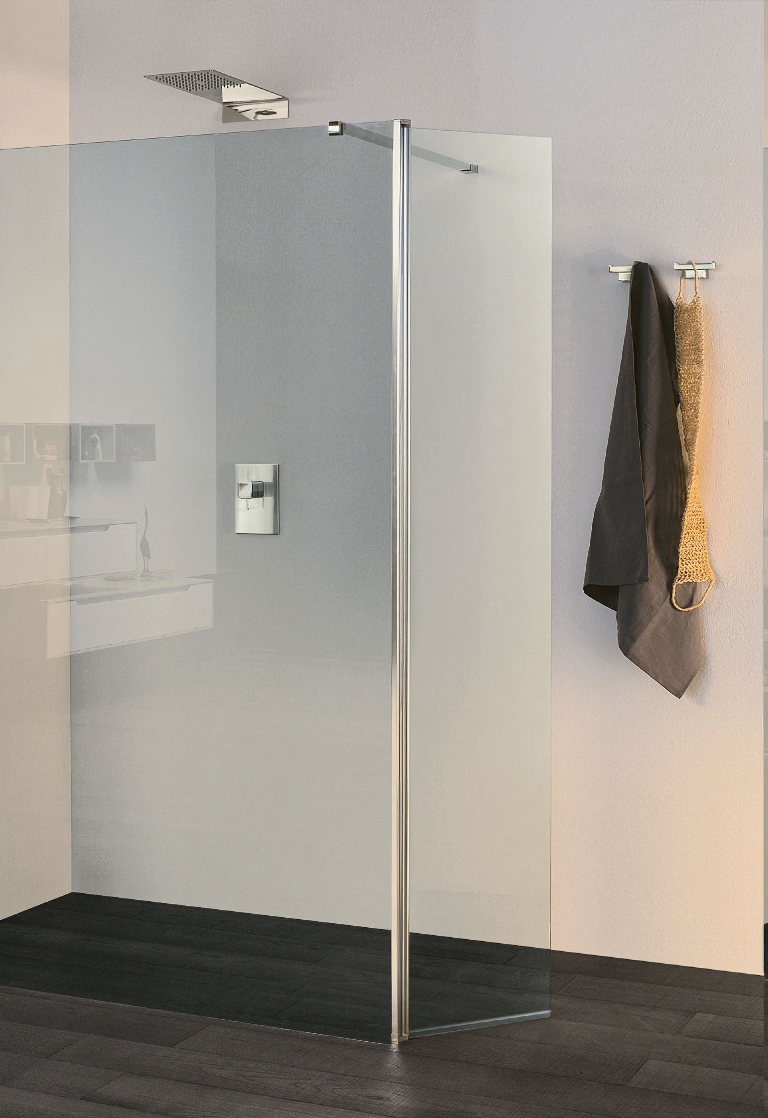DEFLETTORE MOBILE L. 30 H. 200 VETRO 6MM TRASPARENTE FASCIA PROFILO CROMO