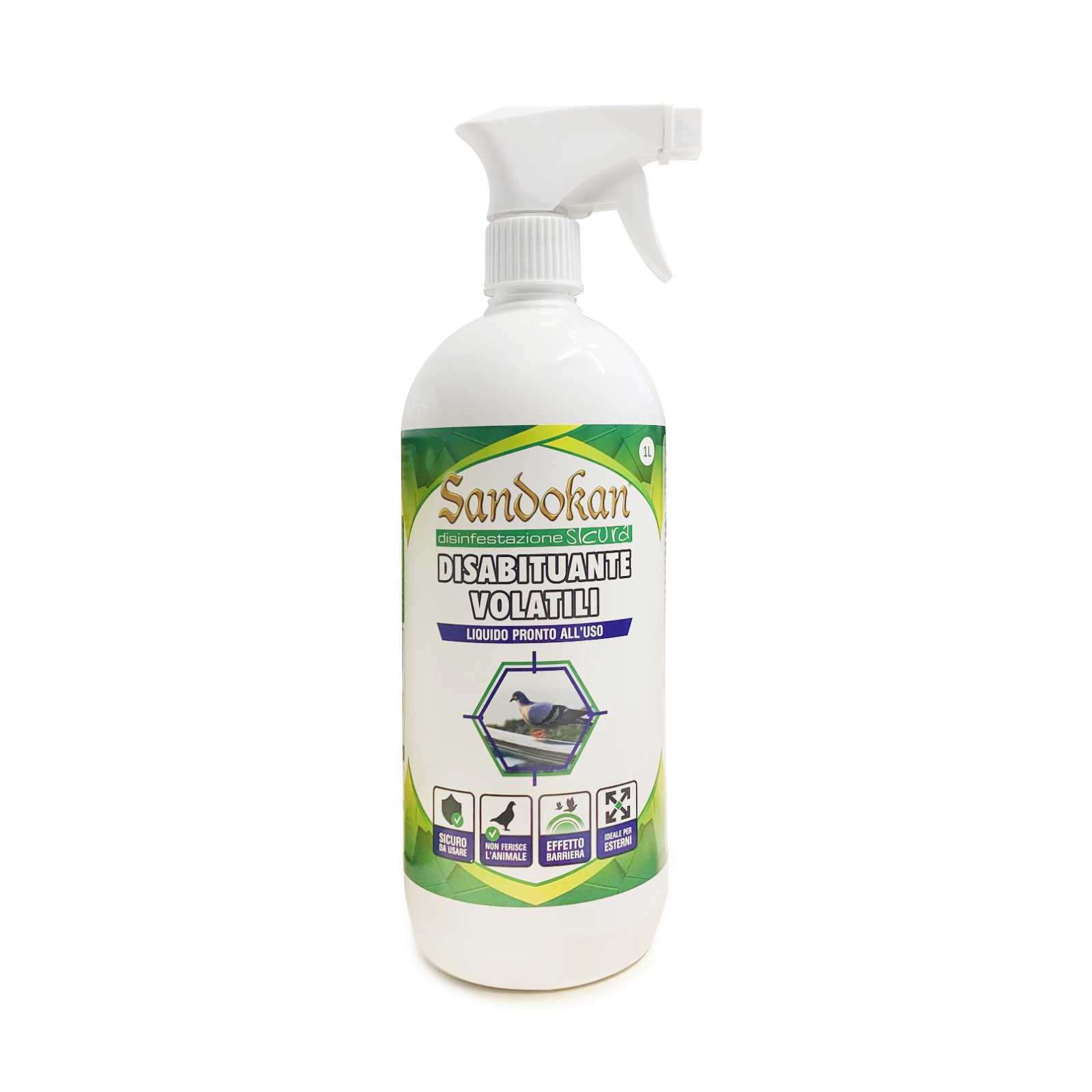 SANDOKAN DISABITUANTE VOLATILI LIQUIDO 1L Proteggi il tuo spazio, in modo naturale, con il disabituante per volatili in formato liquido di Sandokan. Una soluzione da 1 Litro efficace e delicata: basta applicare il prodotto nelle aree desiderate, dove si appoggiano i volatili, così da creare una barriera repellente. La sua formula naturale dissuade gli uccelli senza causare danni, mantenendo la tua zona libera in modo semplice e rispettoso dell’ambiente. Grazie a questo dissuasore per uccelli Sandokan, riuscirai ad ottenere una difesa perfetta senza compromessi. La particolare formulazione spray, senza gas, rende la sua applicazione facile ed immediata. Il disabituante per volatili è quindi l’ideale per negli appartamenti in luoghi come balconi o davanzali. Ancora, grazie al suo lungo getto può essere usato in spazi difficili da raggiungere come sottotetti e ringhiere. Istruzioni per l’uso: Agitare bene il contenitore prima dell’uso. Spruzzare il prodotto direttamente sulle superfici dove è stata osservata la presenza dei volatili, che siano essi piccioni, merli o latri tipi di uccelli. Distribuire il prodotto in maniera uniforme evitando il gocciolamento. Ripetere il trattamento ogni 2-3 giorni fino a quando gli animali non si disabituano. PUNTI DI FORZA: Pronto all’uso Non ferisce l’animale Crea un effetto barriera prolungato Ideale per esterni PLUS PRODOTTO: Formato 1 Litro No cattivi odori ANIMALE BERSAGLIO: Volatili Ideale a prevenire la presenza dei piccioni salvaguardando balconi e terrazzi dai loro escrementi. A base di Essenze Naturali, Pronto all'uso
