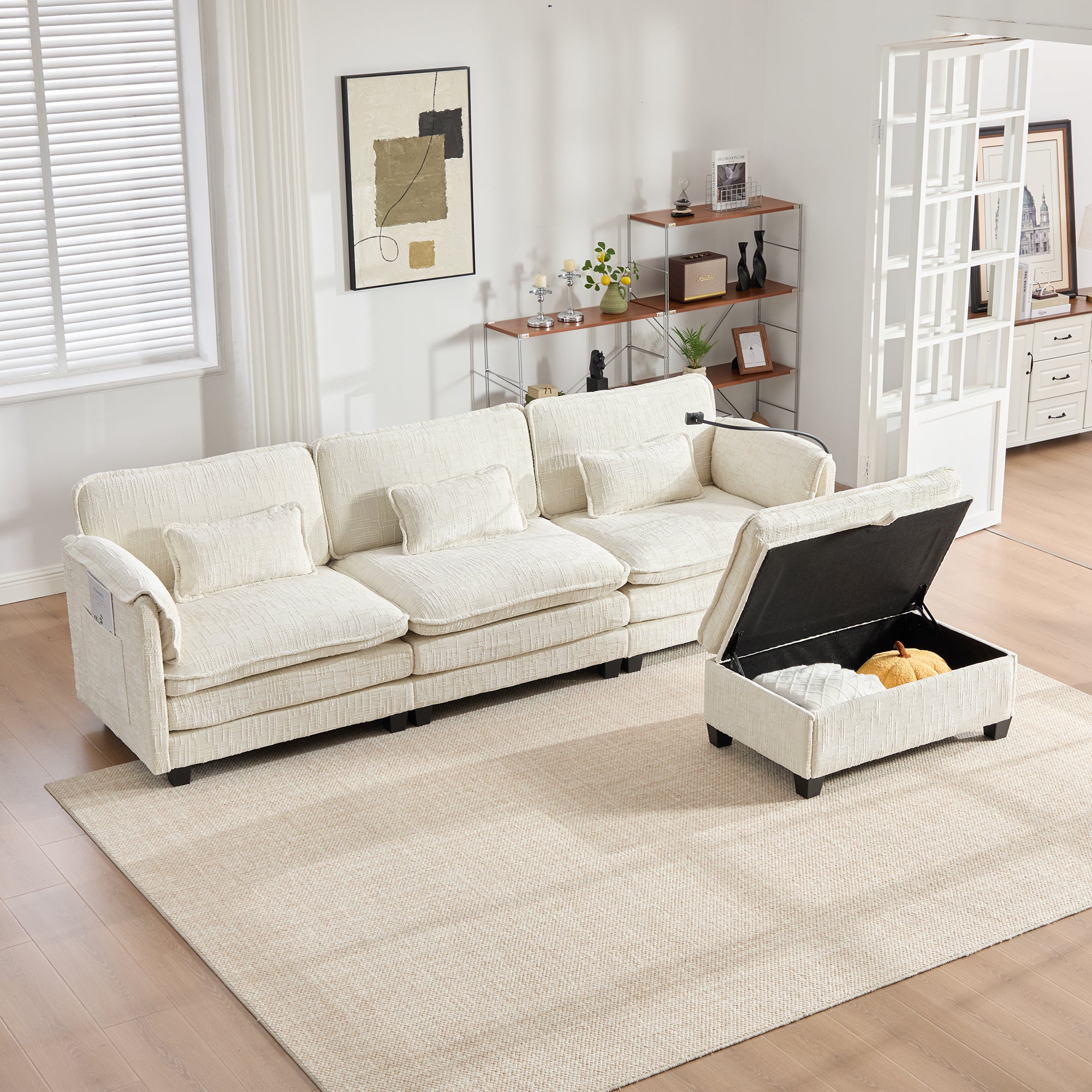 Divano 2 Posti USB Schiuma Memory Foam Borsa Laterale Supporto Mobile Sgabelli Modulari Ciniglia Beige Soggiorno Home Office