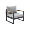 Un comodo divano per i tuoi momenti di relax Godetevi una pausa caffè sulla terrazza con il divano da esterno Persea. Progettato per ospitare 2 persone, questo divano unisce comfort e facilità di manutenzione. La sua struttura in alluminio antracite e i braccioli in teak si puliscono semplicemente con un panno umido, rendendo il tutto leggero e facile da spostare. I suoi cuscini grigi in poliestere riciclato al 100% offrono un comfort ottimale. Idrorepellenti e removibili, sono fissati alla struttura per evitare che venga presa dal vento. Una gamma calda e modulare Progettata in alluminio resistente alle intemperie e teak certificato FSC, l'intera gamma Persea porterà un tocco bimateriale di grande design sulla vostra terrazza. Disponibile nei colori antracite e bianco, questo divano può essere completato con i divani a 3 posti, le poltrone e i tavolini della gamma per creare un arredo da giardino esterno moderno e armonioso. Prolunga il tuo momento di relax in terrazza con il tavolo e le sedie da giardino Persea, o il lettino prendisole della stessa serie. Materiali resistenti e durevoli Robusto e durevole, questo divano da esterno è costruito per durare. Il teak è noto per la sua robustezza, così come l'alluminio, che è resistente agli agenti atmosferici. Per garantire una lunga durata al vostro mobile, si consiglia di coprirlo durante i lunghi periodi di inutilizzo per proteggerlo dallo sporco e dalle intemperie, e di applicare annualmente olio per teak sul legno dei braccioli. Le fodere dei cuscini rimovibili sono lavabili in lavatrice per una facile manutenzione. Sono disponibili pezzi di ricambio riparabili per prolungare la vita dei tuoi mobili.