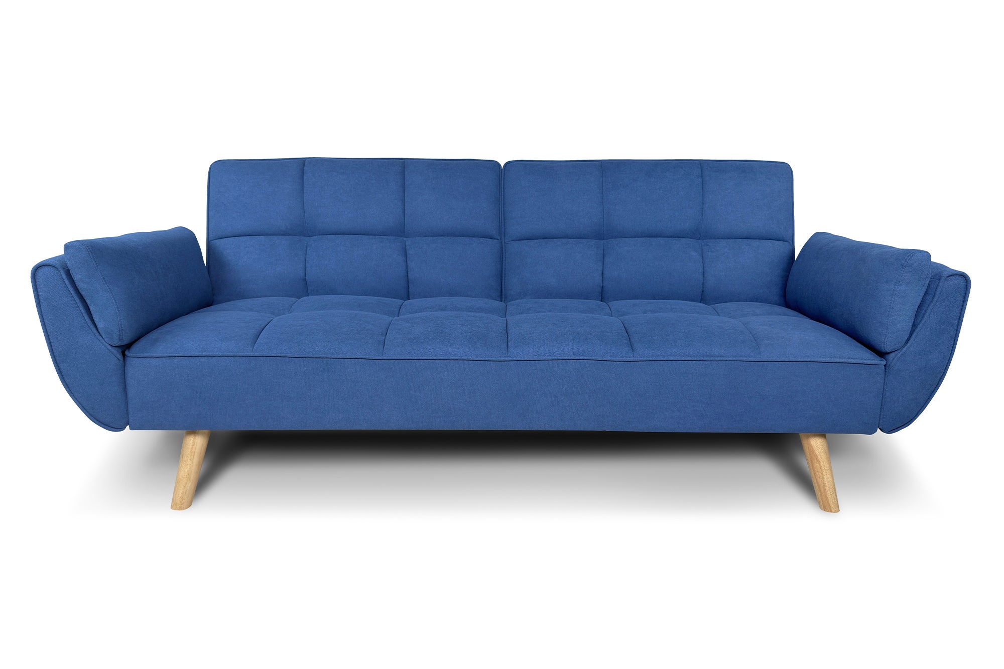 Divano letto clic clac in tessuto vellutato blu - Ambra piede naturale
