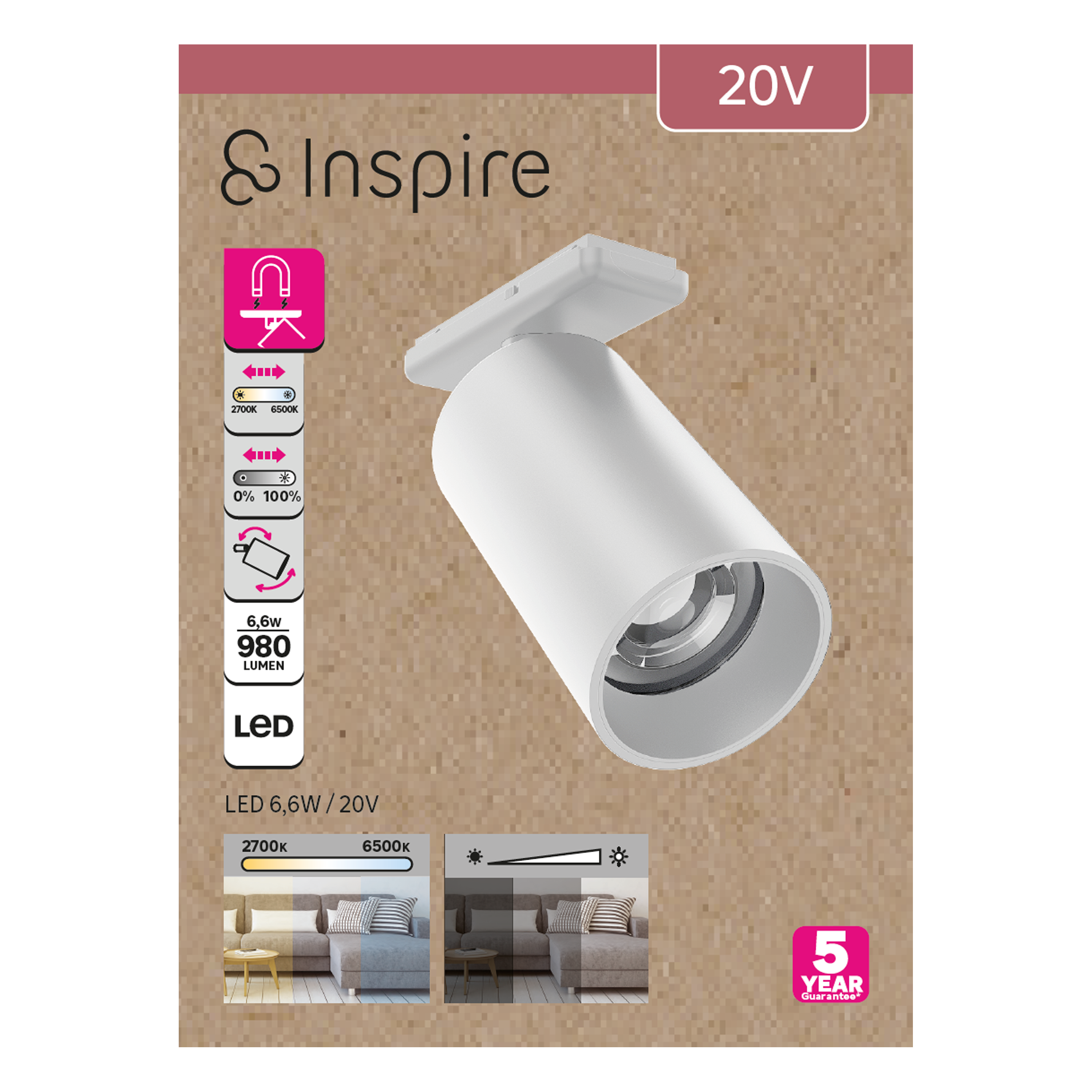 Il faretto decorativo INSPIRE è la soluzione ideale per illuminare con stile. Grazie alla sua fonte luminosa INSPIRE, è in grado di creare un'atmosfera unica e personalizzata. Il faretto è compatibile con binari componibili e non necessita di alcuna app, box, telecomando o assistente vocale.