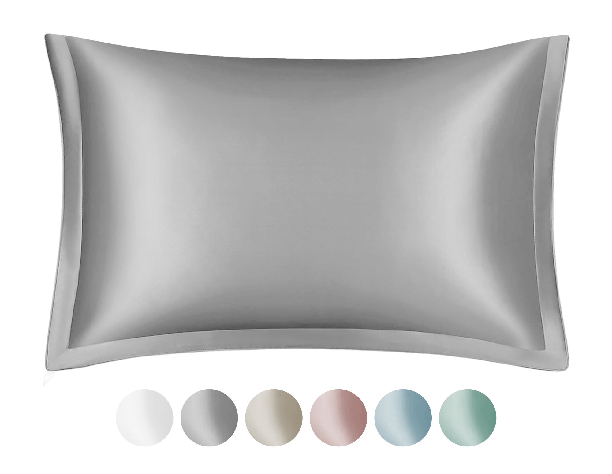 Federa 100% Seta Di Gelso 50x80Cm Chiusura Zip Con Volant da 5 Cm Anticrespo Anti-Age Rigenerante Cromoterapia - Grigio