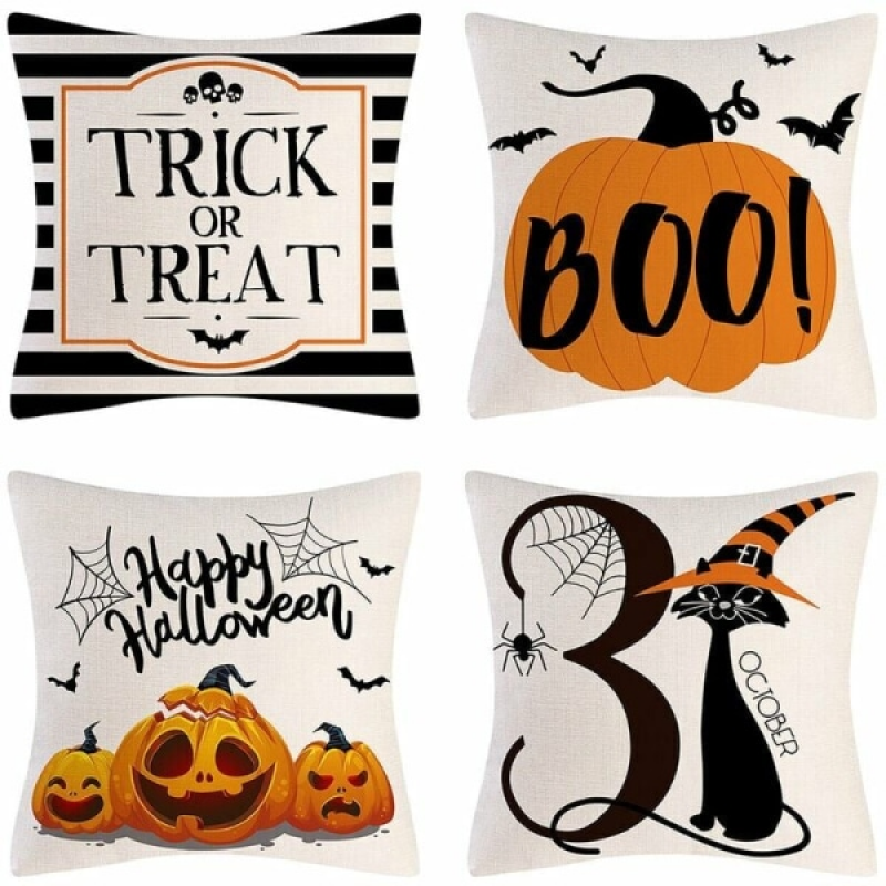 Federe di Halloween 18"x18" Set di 4 federe Dolcetto o scherzetto Federa per divano letto in lino Happy Halloween Decorazione