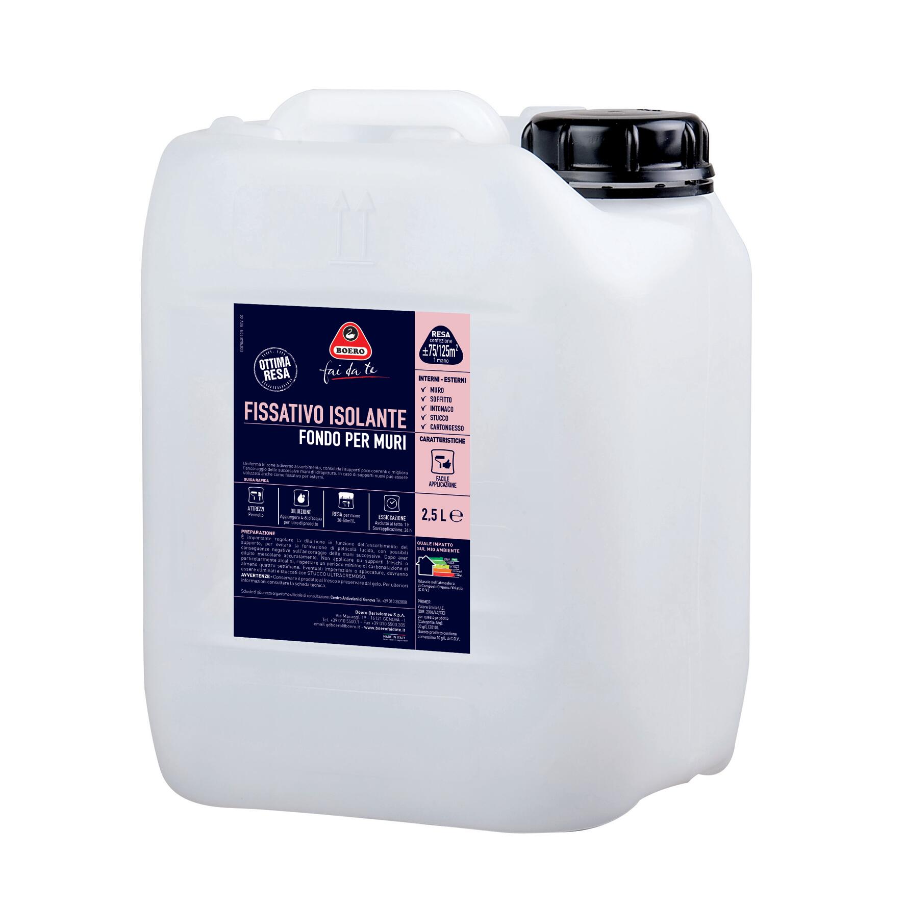 Fondo fissativo per muri, uniforma le zone a diverso assorbimento, consolida i supporti poco coerenti e migliora l'ancoraggio delle successive mani di idropittura. In caso di supporti nuovi può essere utilizzato anche come fissativo per esterni.