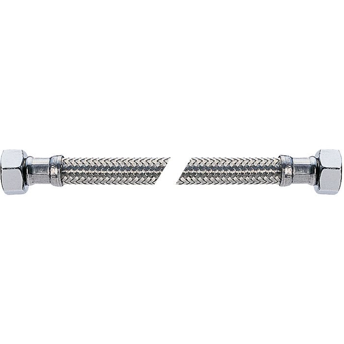 Tubo flessibile rinforzato con treccia in acciaio inossidabile TAQ di 1000 mm di lunghezza. I raccordi di connessione di questo prodotto hanno un diametro di HH 1/2 ciascuno e sono rifiniti in ottone. Questo tubo, realizzato con gomma EPDM ACD e rinforzato con manicotto e treccia in acciaio inossidabile, è particolarmente consigliato per qualsiasi connessione nelle installazioni sanitarie, sia in casa che nell'industria, come ad esempio WC e rubinetteria generale tra molte altre opzioni. Le specifiche tecniche di questo prodotto sono: diametro esterno di 12 mm, diametro interno di 8 mm, diametro di passaggio di 6 mm, portata nominale di 29 l/min, raggio di curvatura di 30 mm, pressione di esercizio di 10 bar, adatto per l'uso come fonte di acqua potabile.
