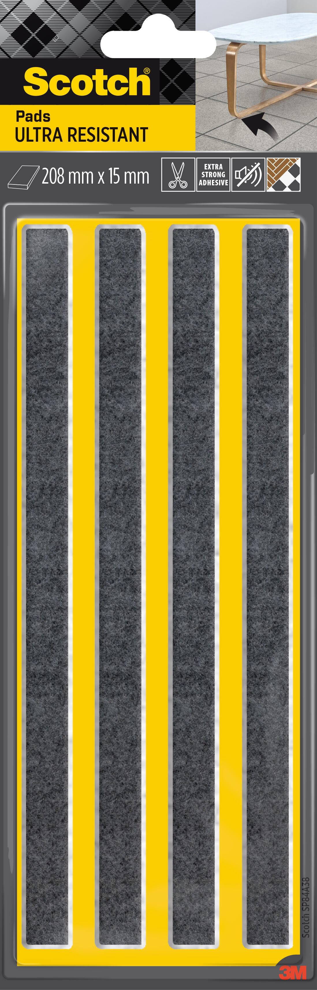 Scotch SP87A38. 4 Feltrini ritagliabili in lana grigia con bordi ad alta resistenza 208x15 mm. Adesivo extra forte. Massima riduzione del rumore -30 decibel.