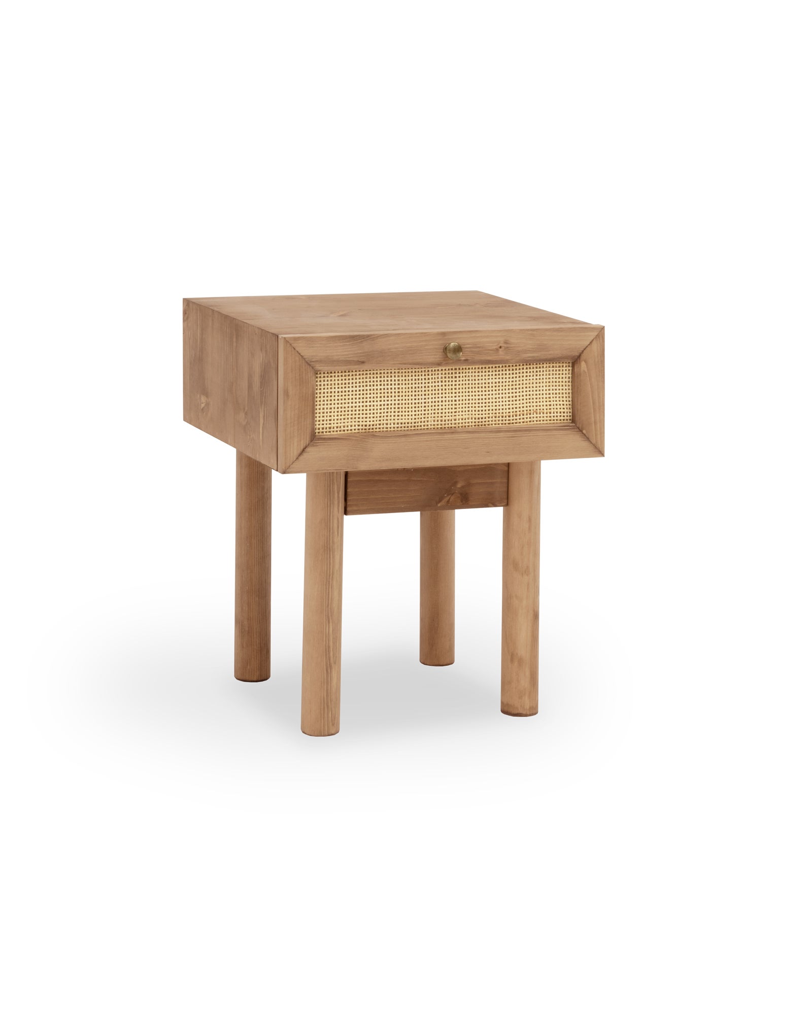 - Tavolino realizzato con legno naturale di abete e tessuto di midollo di rattan.