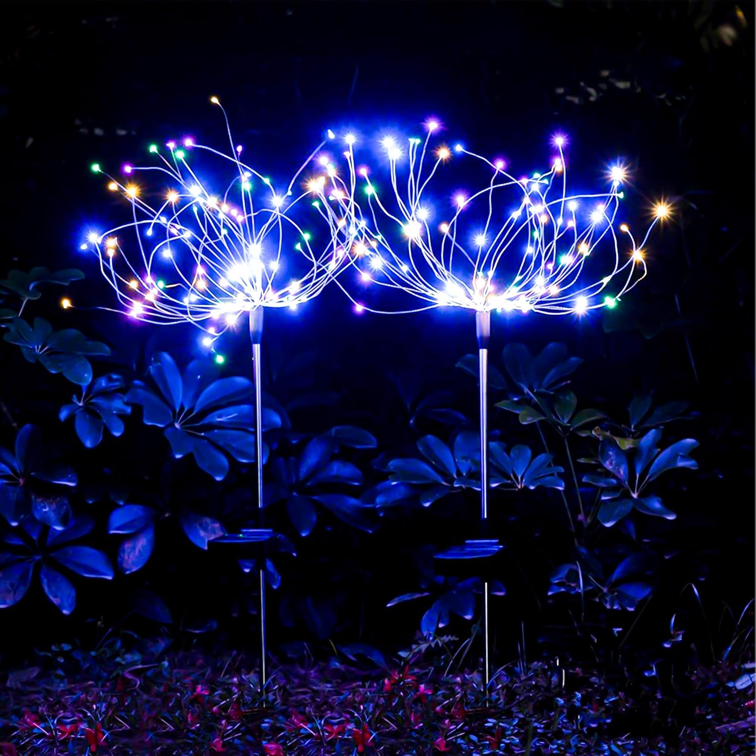 Fuochi d'artificio solari, 2 pezzi di luci solari per decorazioni da giardino, per esterni, prato, patio, balcone, decorazioni per feste di Natale (