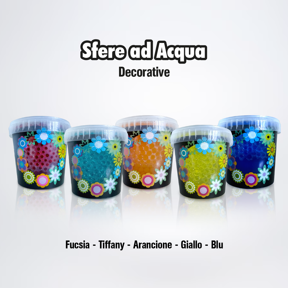 Sfere d'acqua in barattolo pronte all'uso.