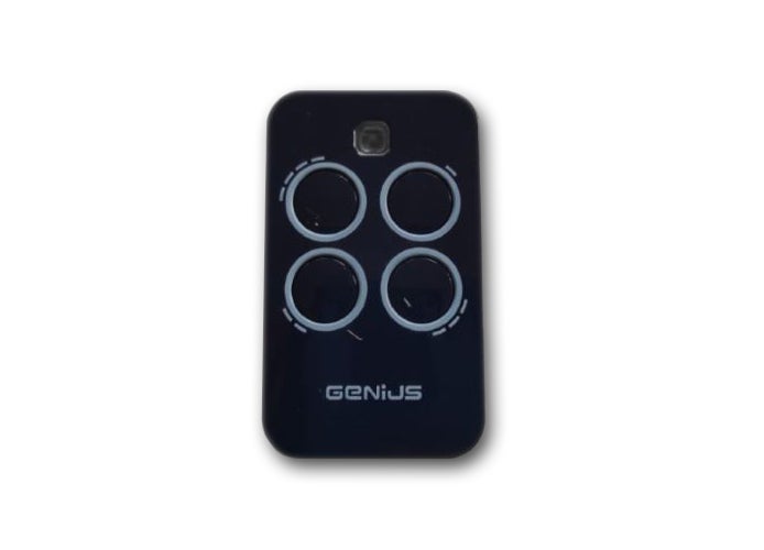 Telecomando GENIUS nero a 4 canali. Frequenza 433,92 Mhz. Perfetto per comandare il cancello o la porta del garage.