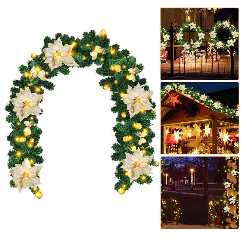 Ghirlanda di Natale Ghirlanda di abete Decorazione natalizia per interni ed esterni Ghirlanda artistica 2,7 m 50 LED con Gold decorativo