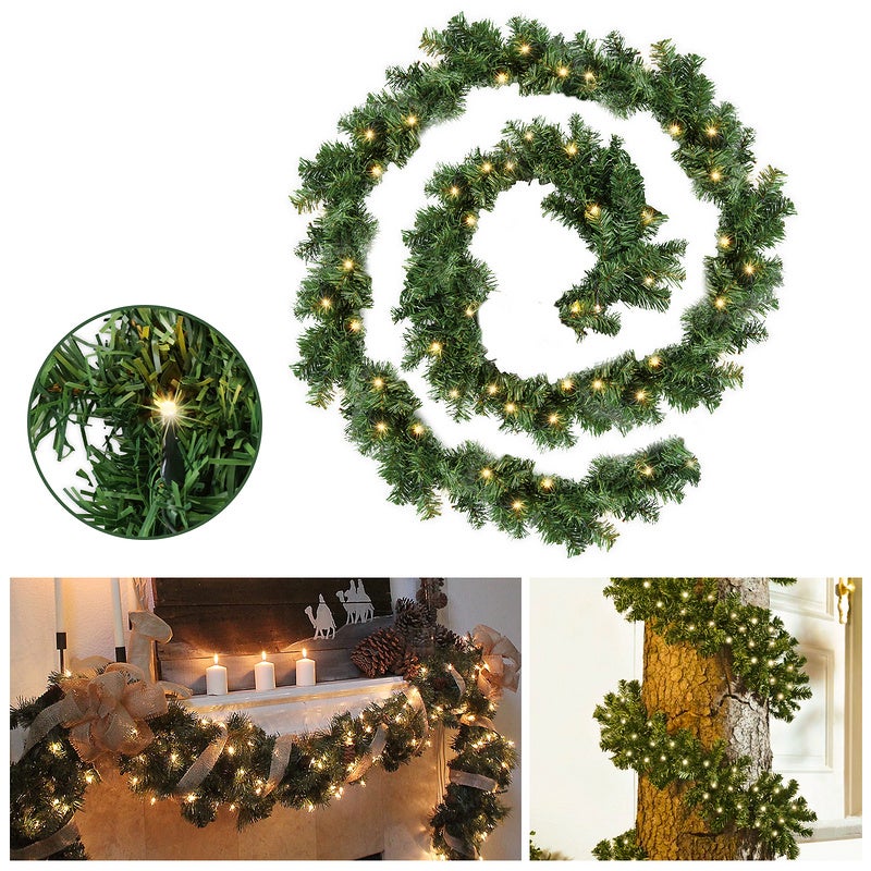 Ghirlanda natalizia artificiale di 5 m con 320 punte e 100 luci LED. Ghirlanda natalizia decorativa da appendere o appoggiare, Atmosfera festosa per i tuoi interni durante il periodo natalizio!