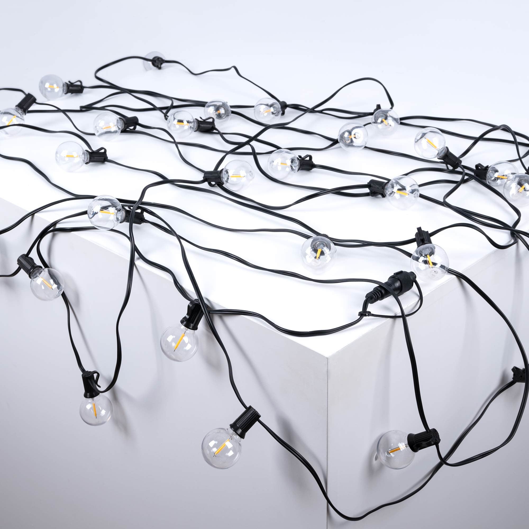 Ghirlanda luminosa per esterni 15 + 2 metri - 30 lampadine a filamento LED E12 G40 1W - IP44 - Bianco caldo