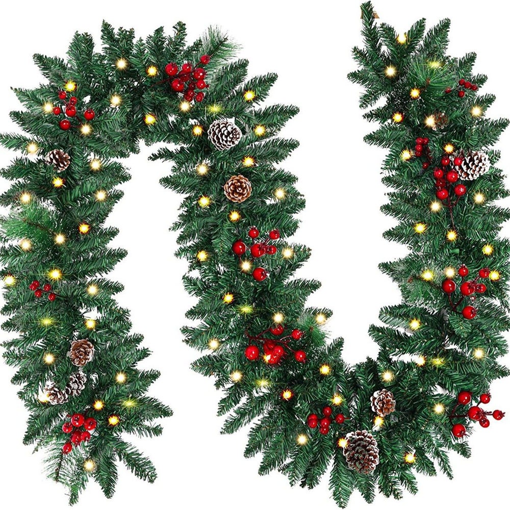 Questa ghirlanda natalizia pre-illuminata a 50 LED crea un'atmosfera calda nella tua stanza e in casa durante l'inverno. Richiede solo 3 batterie AA (non incluse).