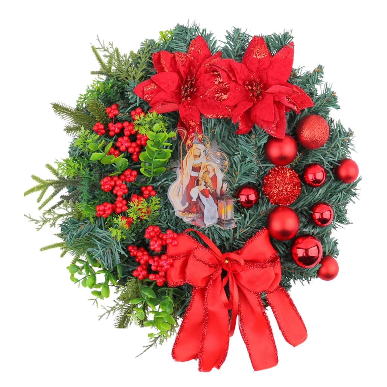 Ghirlanda natalizia, decorazione invernale con ghirlanda, adornata con pigne e bacche rosse, decorazione per la casa durante le feste, 30 cm